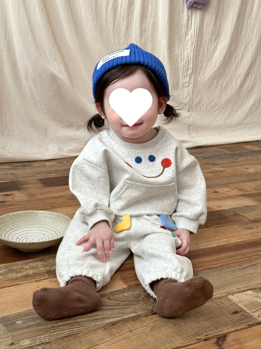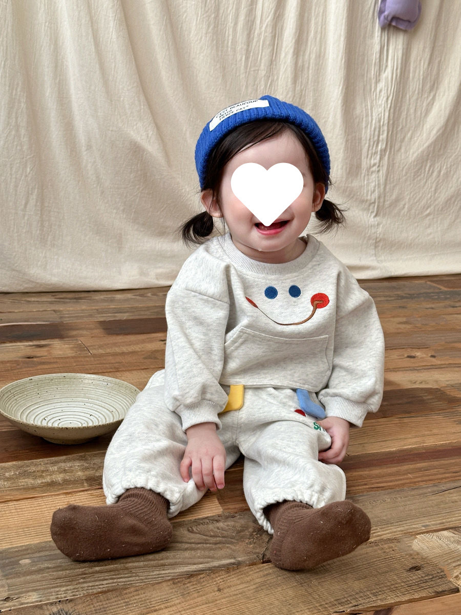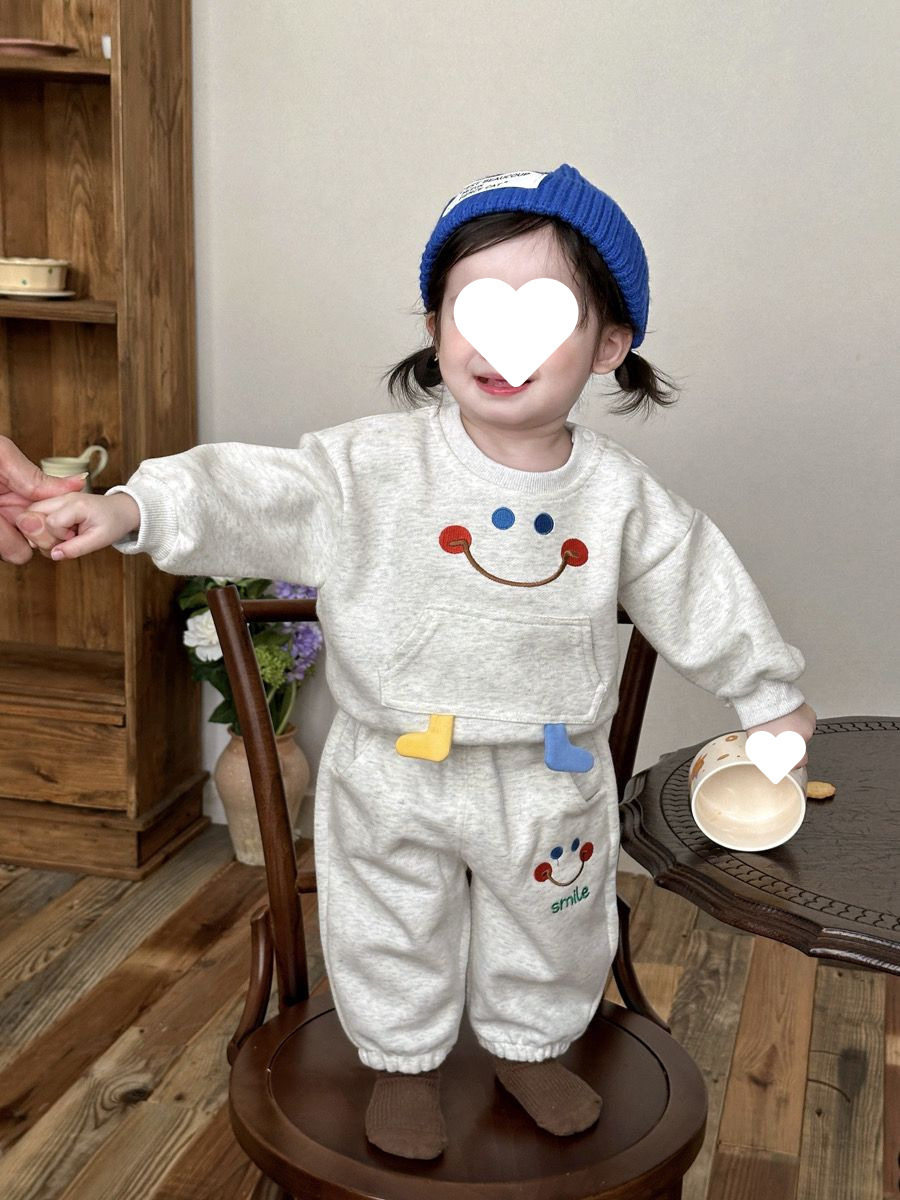 • 회색 웃는 얼굴 정장 봄과 가을 스타일