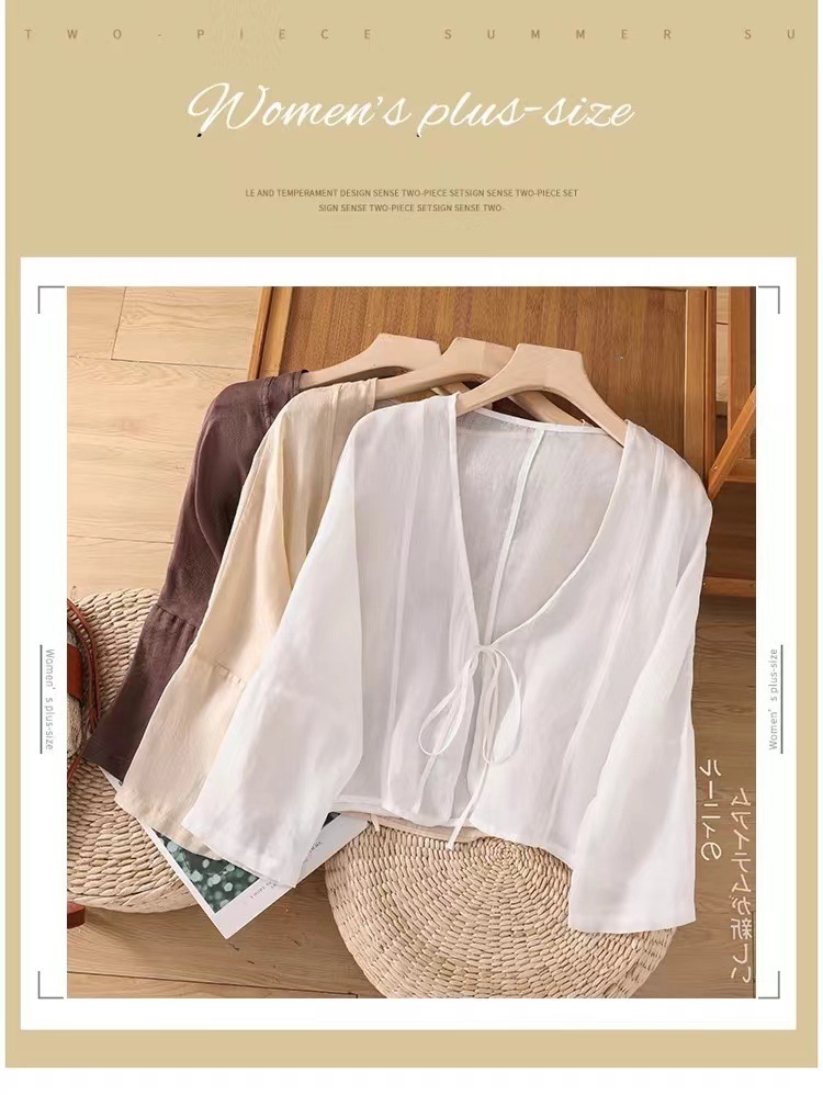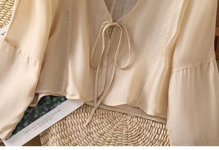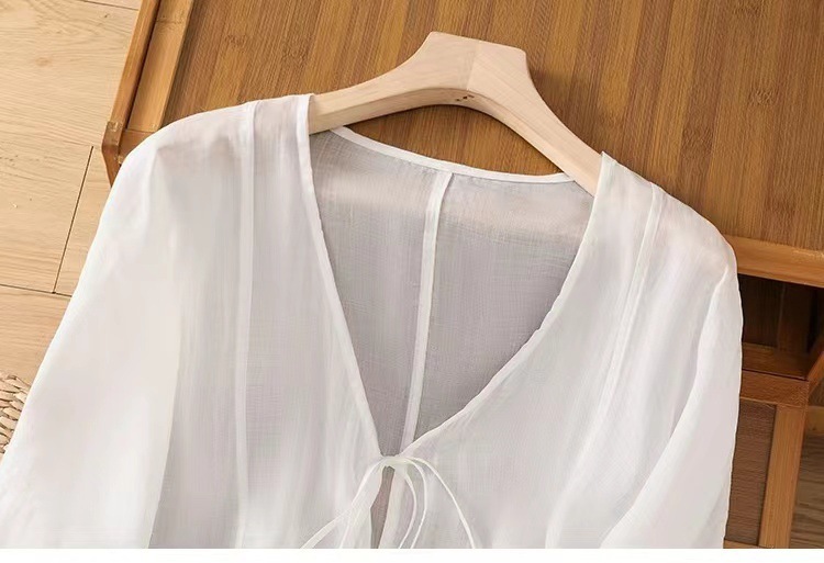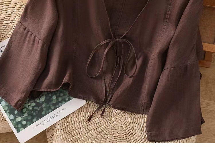 중국 스타일 코튼 리넨 선스크린 셔츠 카디건 느슨한 컬러 예술적 여름 얇은 레이스 업 짧은 코트 캐주얼 탑스토어 가기