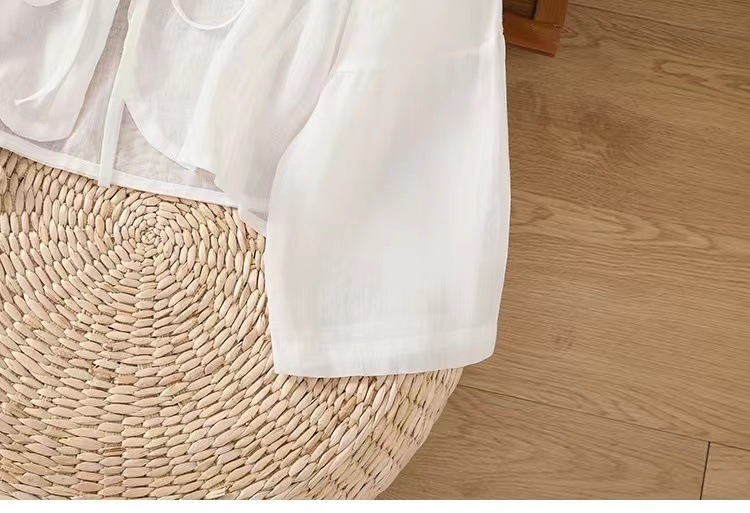 중국 스타일 코튼 리넨 선스크린 셔츠 카디건 느슨한 컬러 예술적 여름 얇은 레이스 업 짧은 코트 캐주얼 탑
