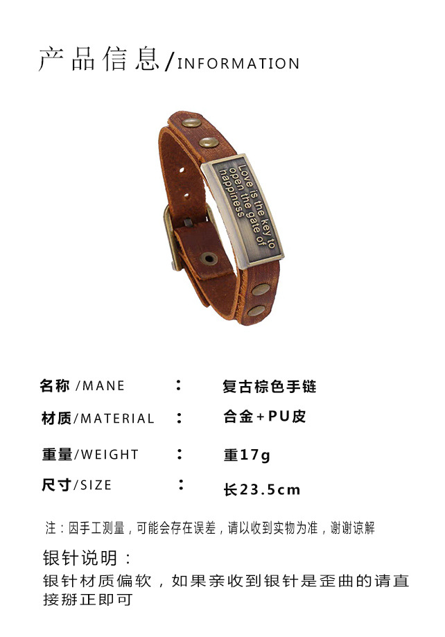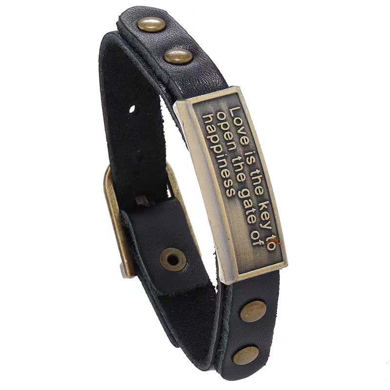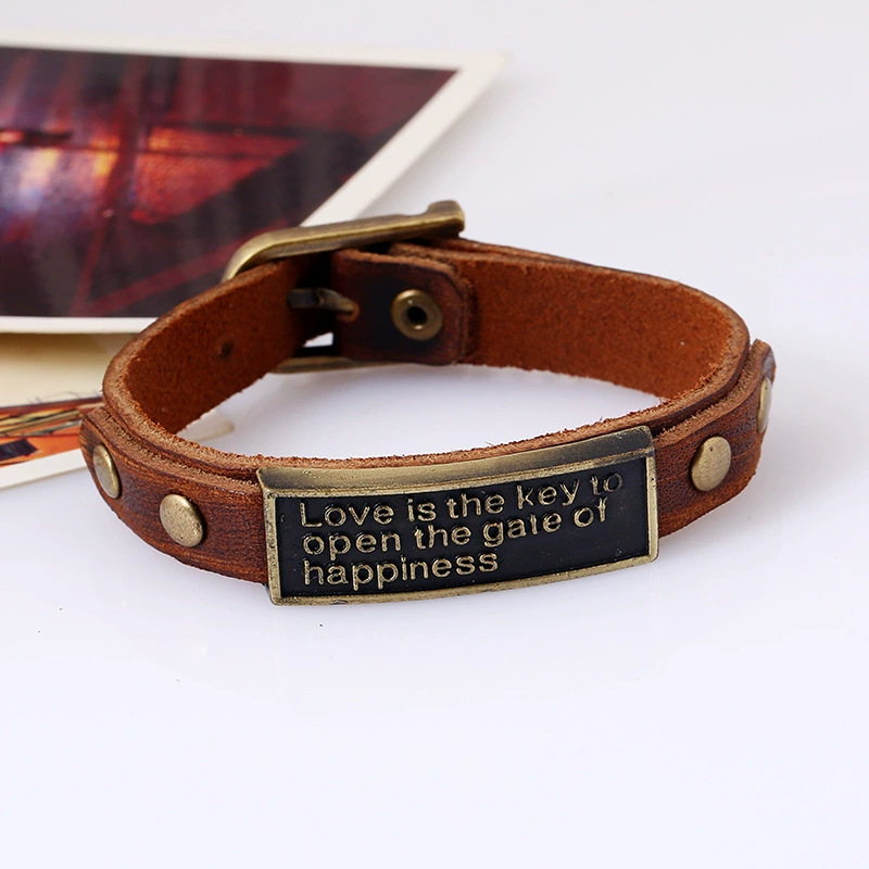 사랑은 행복의 문을 여는 열쇠입니다 커플 소 가죽 팔찌 간단한 유럽과 미국의 인기있는 복고풍 멀티 레이어 가죽 팔찌스토어 가기