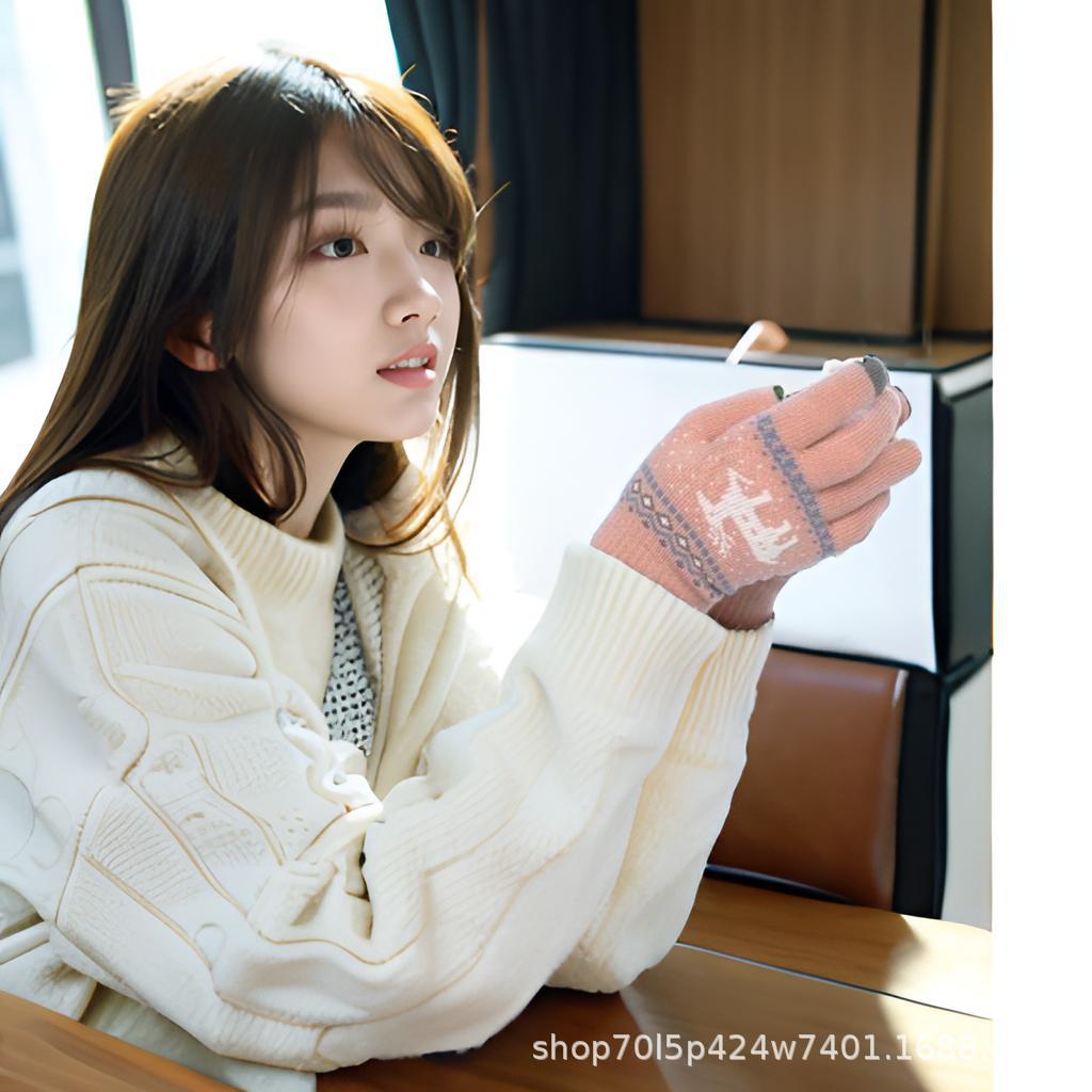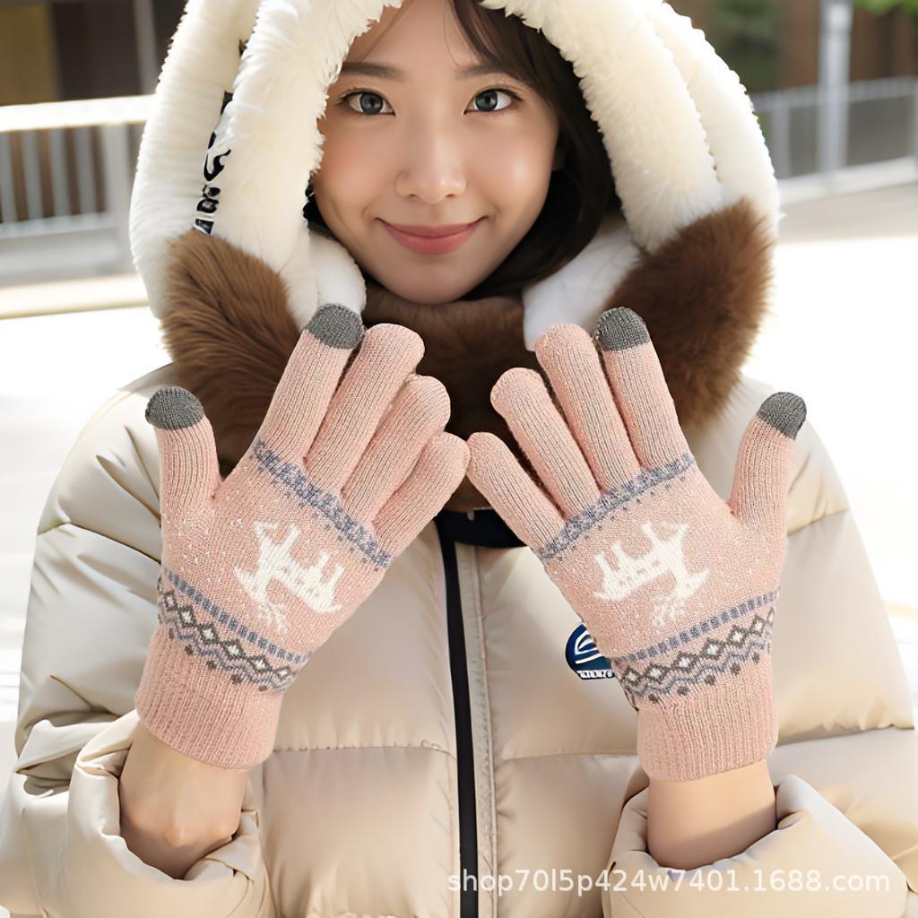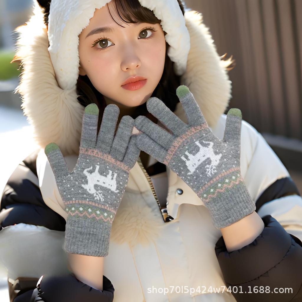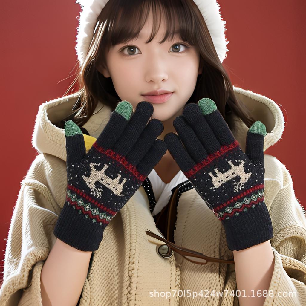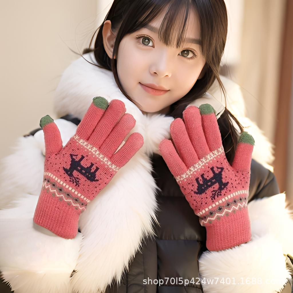 남녀공용 겨울용 귀여운 따뜻한 터치스크린 자전거용 방한 크리스마스 사슴 니트 양모 장갑