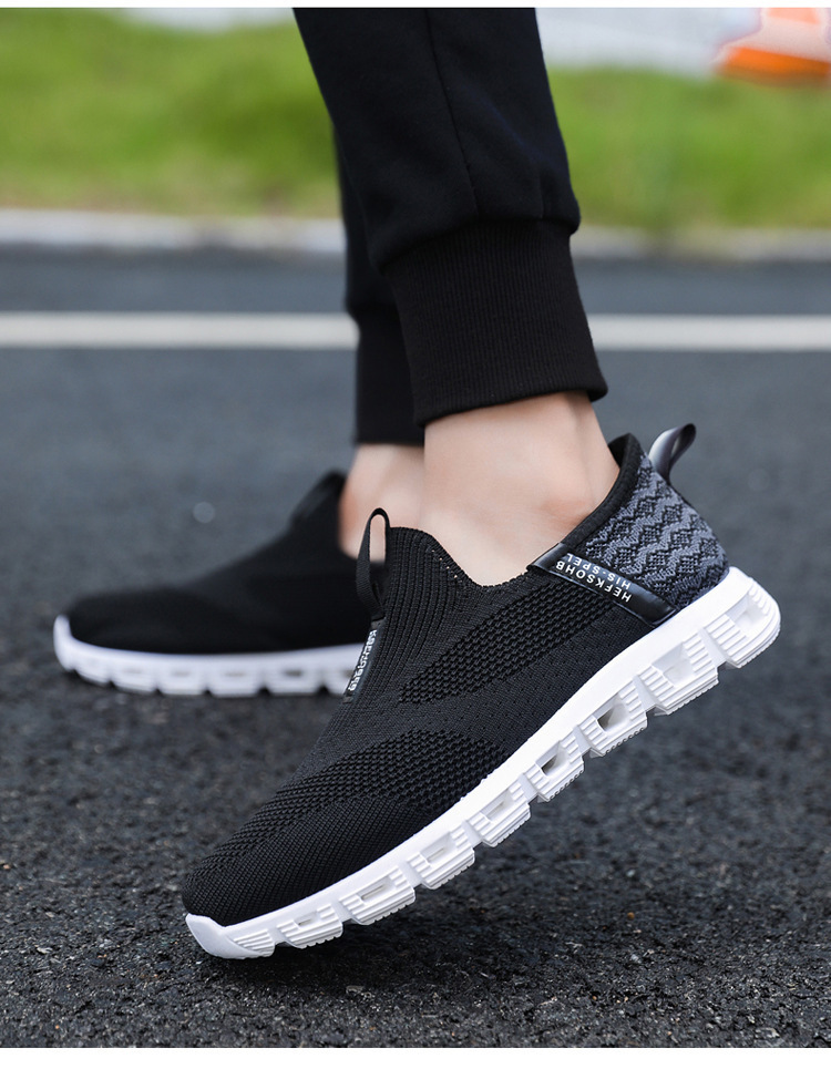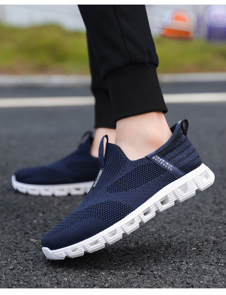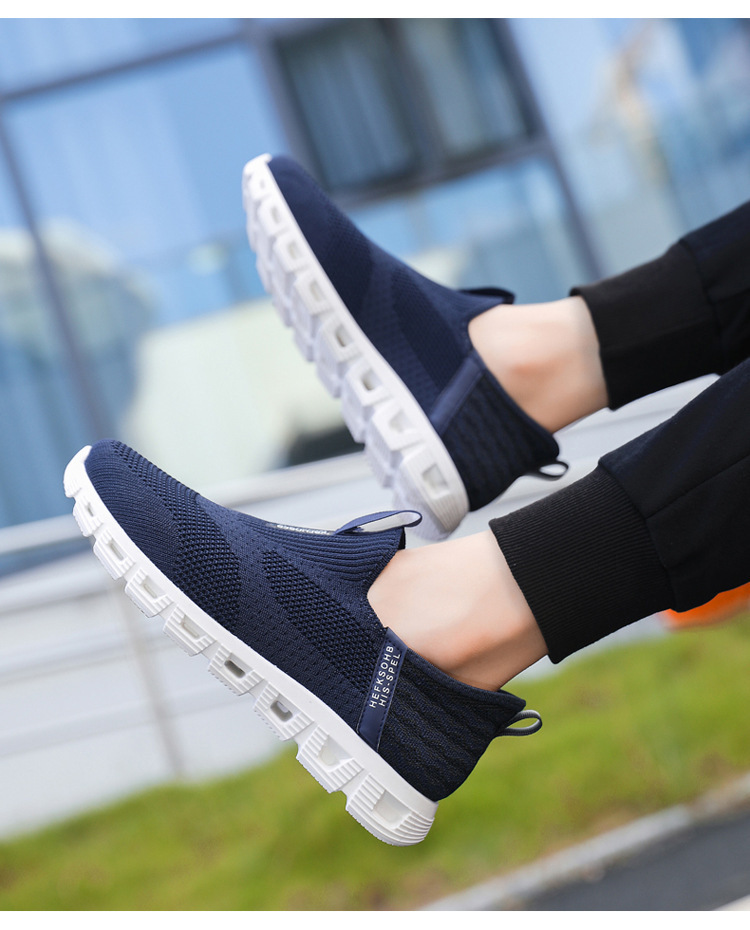 국경 간 플러스 사이즈 남성 신발 2025 새로운 비행 직조 운동화 간단한 게으른 슬립 캐주얼 신발 남성용 경량 신발