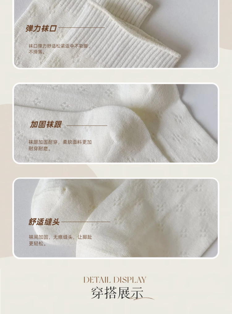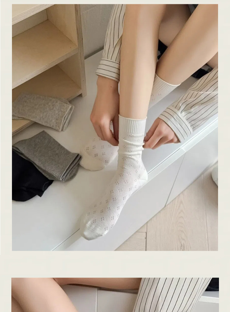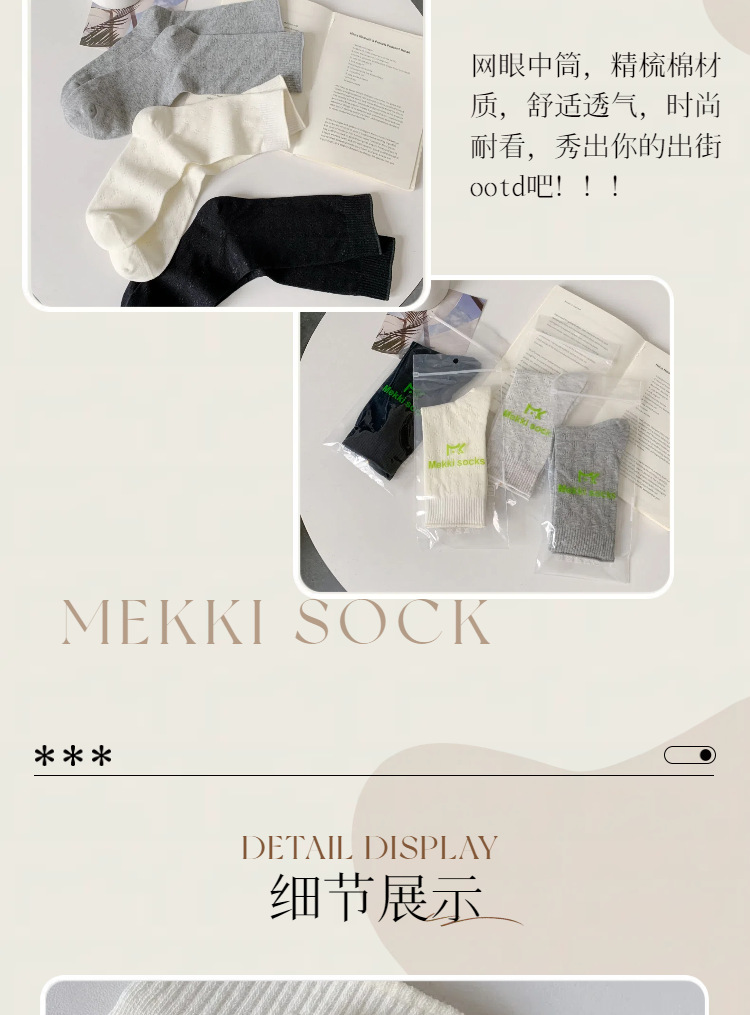 Mekki 봄 여름 양말 여성 중반 종아리 양말 얇은 여성 양말 크림 화이트 메쉬 양말 캐주얼 Zhuji 양말스토어 가기