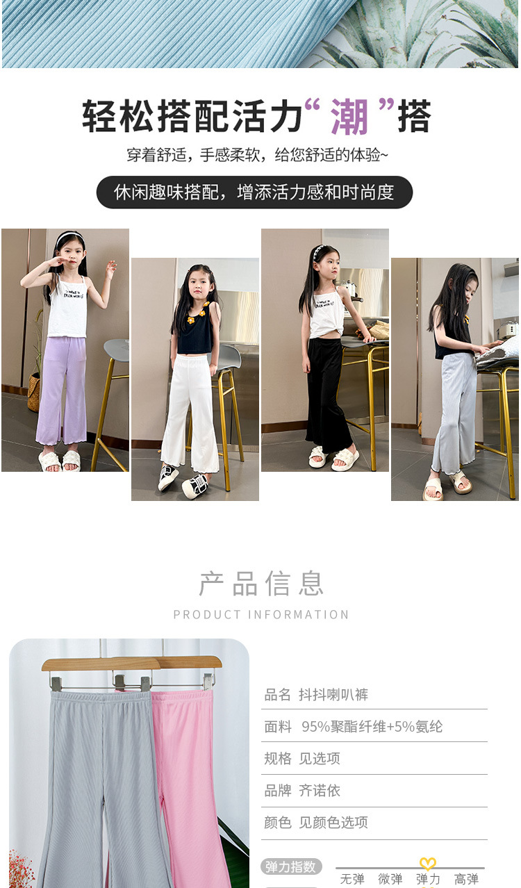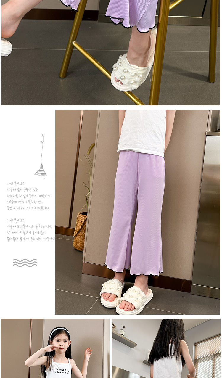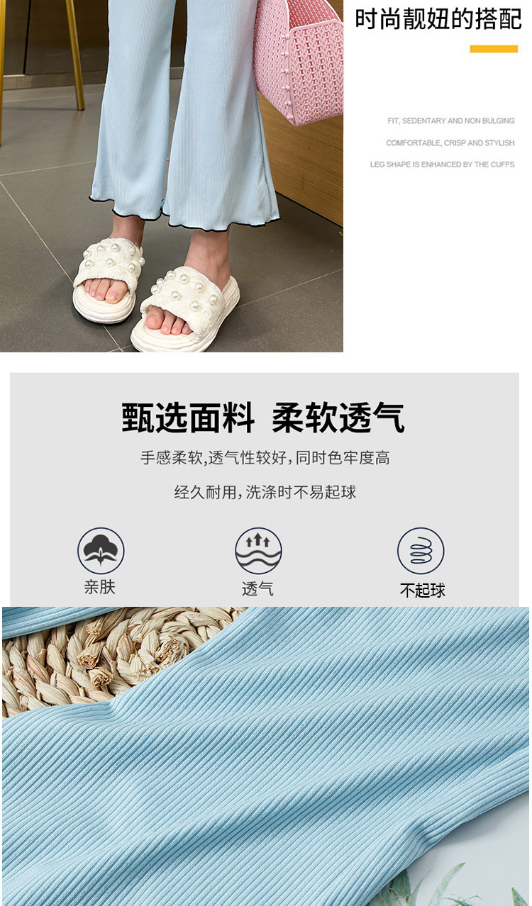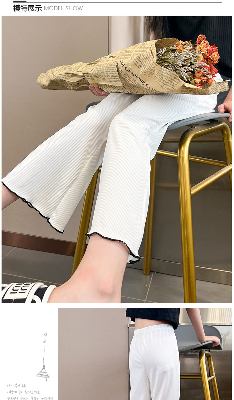 여름 새로운 어린이 레깅스 여자 자른 플레어 바지 아이스 실크 캐주얼 귀여운 캔디 컬러 외부 착용 바지스토어 가기