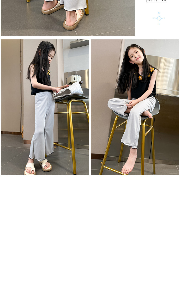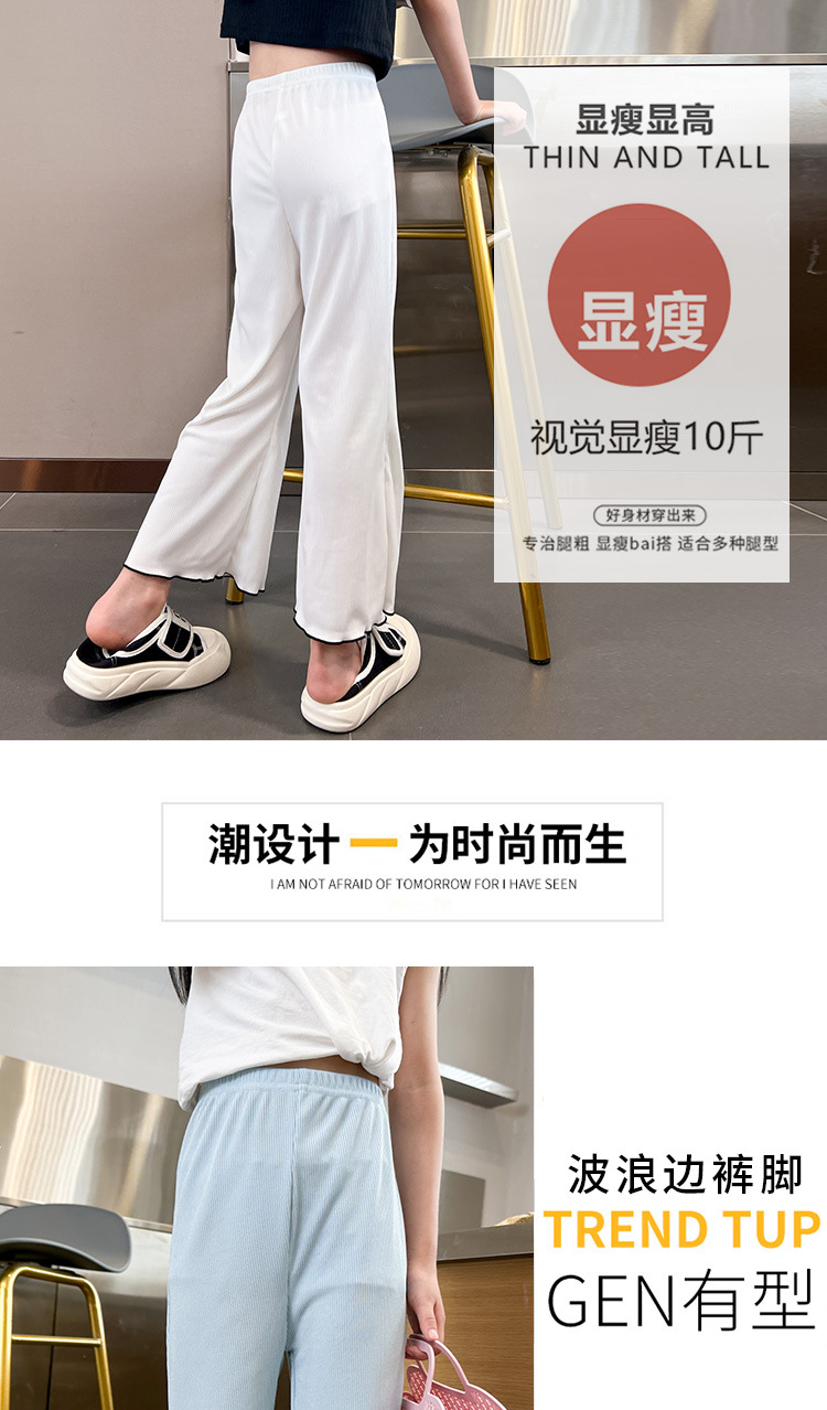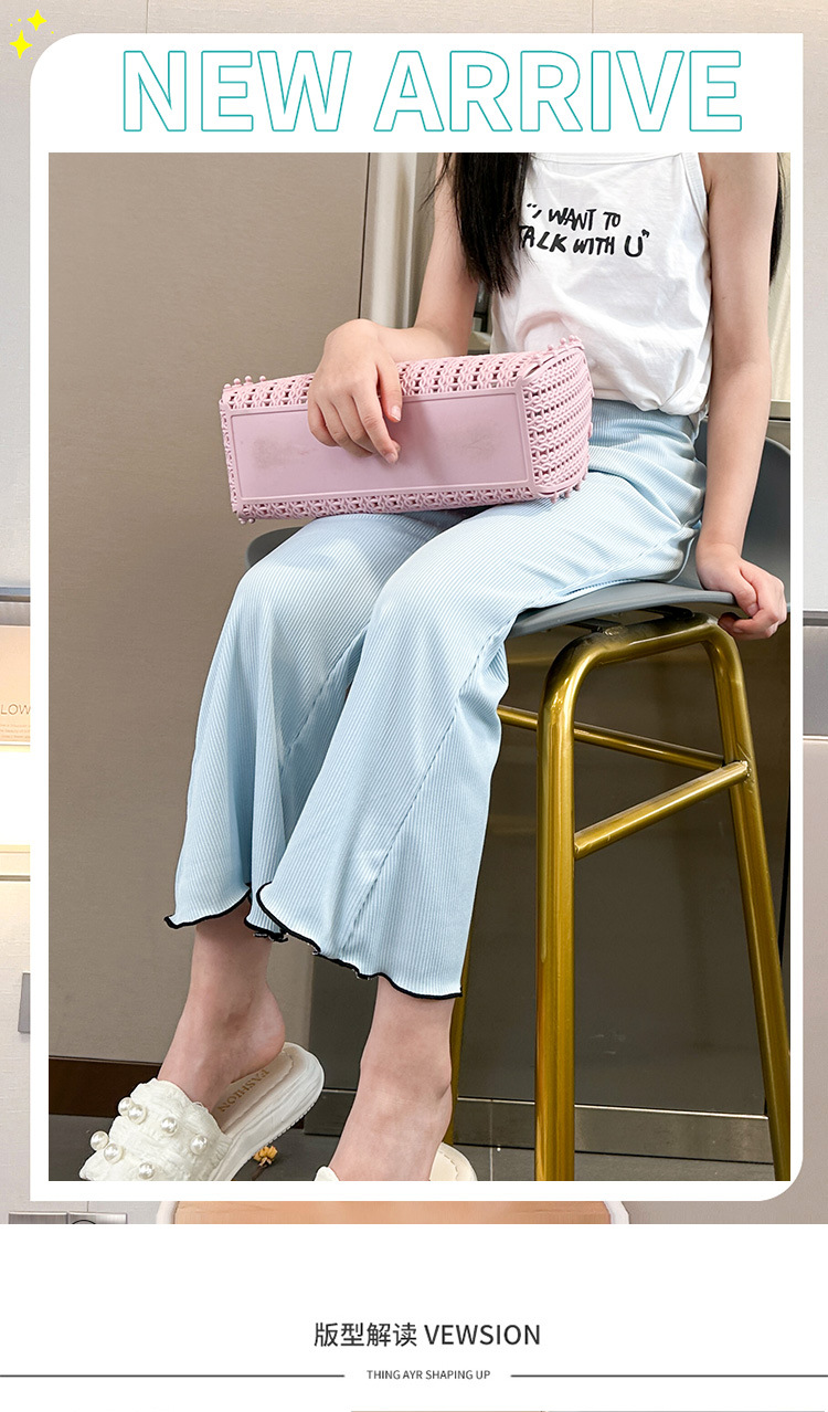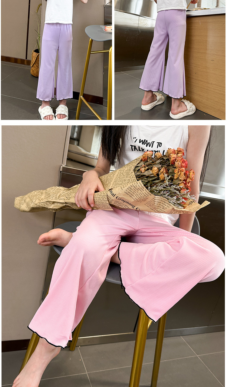 여름 새로운 어린이 레깅스 여자 자른 플레어 바지 아이스 실크 캐주얼 귀여운 캔디 컬러 외부 착용 바지