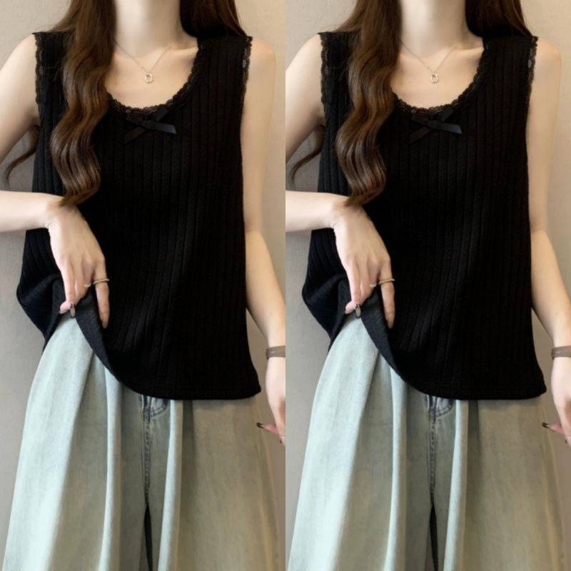 봄 봄 2025 새로운 레이스 레이스 카미 솔 조끼 여성 플러스 사이즈 느슨한 배 덮음 외부 착용 내베이스 탑