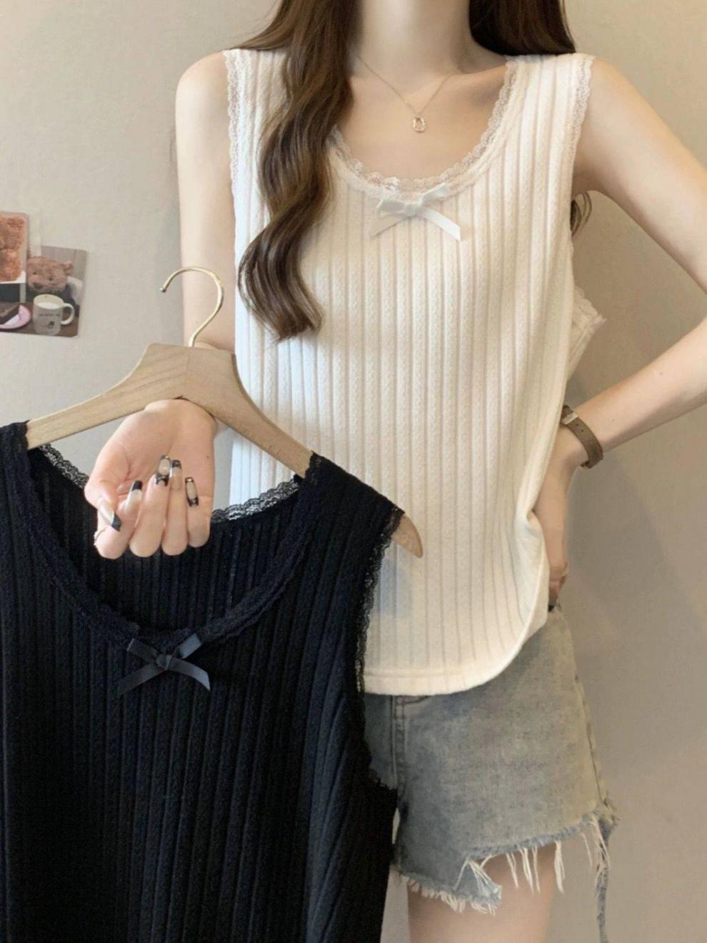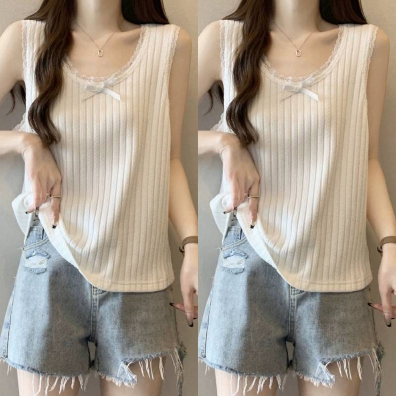봄 봄 2025 새로운 레이스 레이스 카미 솔 조끼 여성 플러스 사이즈 느슨한 배 덮음 외부 착용 내베이스 탑스토어 가기