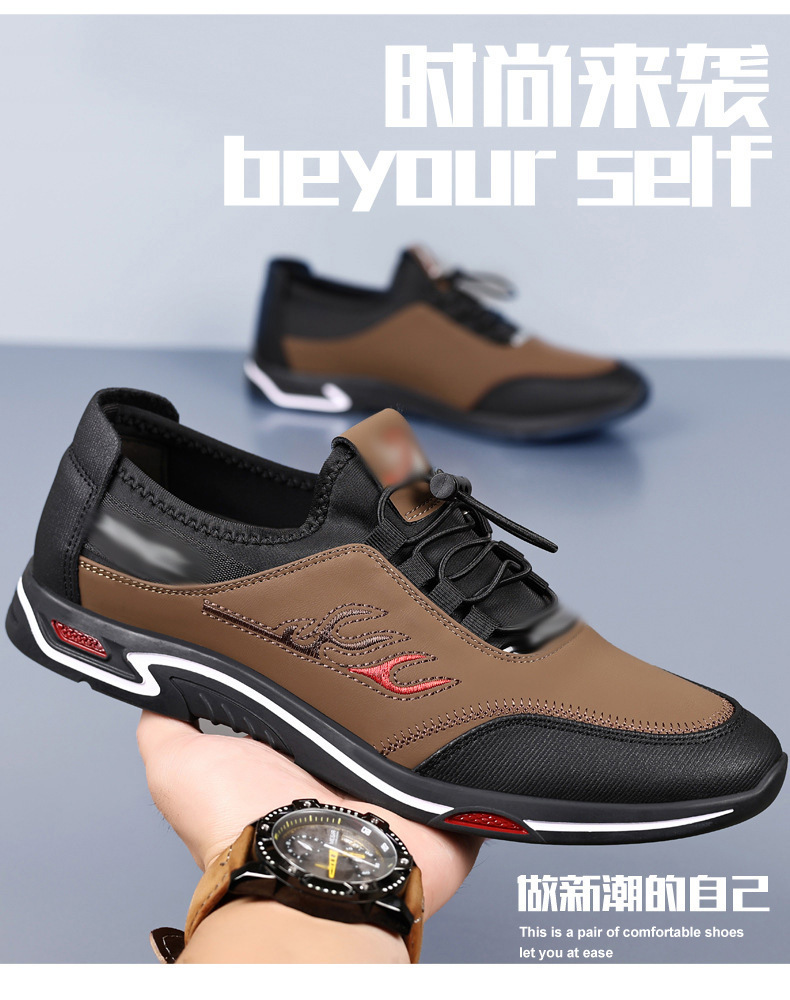 부드러운 밑창 남성 신발 2025 봄과 여름 새로운 캐주얼 신발 가죽 얕은 보드 신발 영국 로우 탑 스텝 온 신발 도매스토어 가기