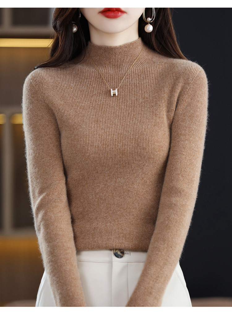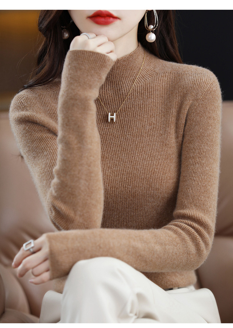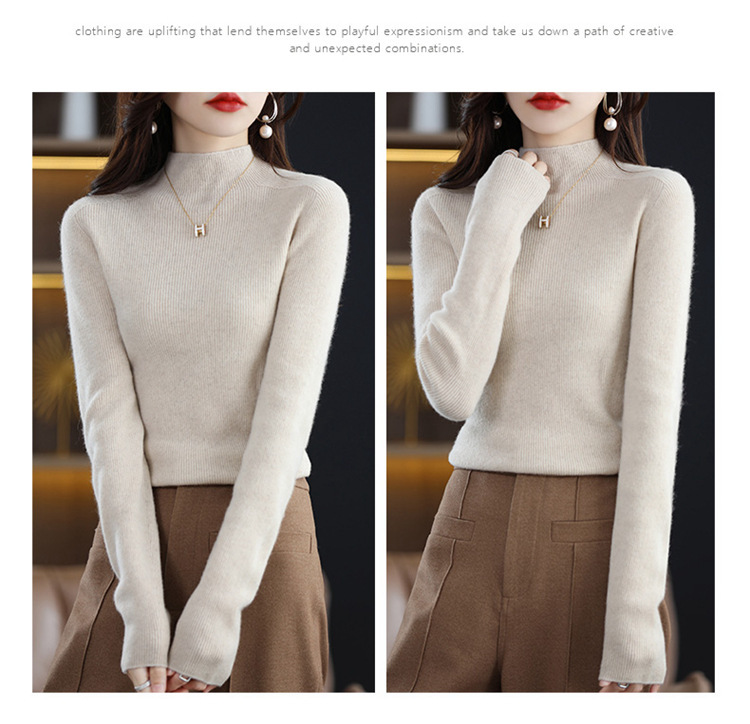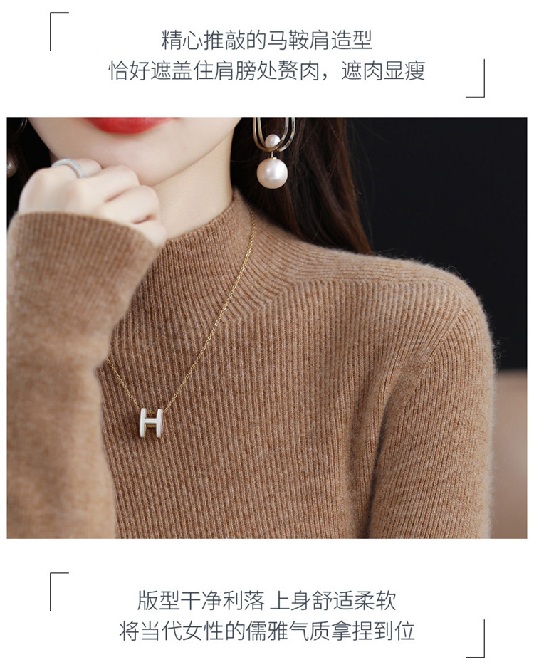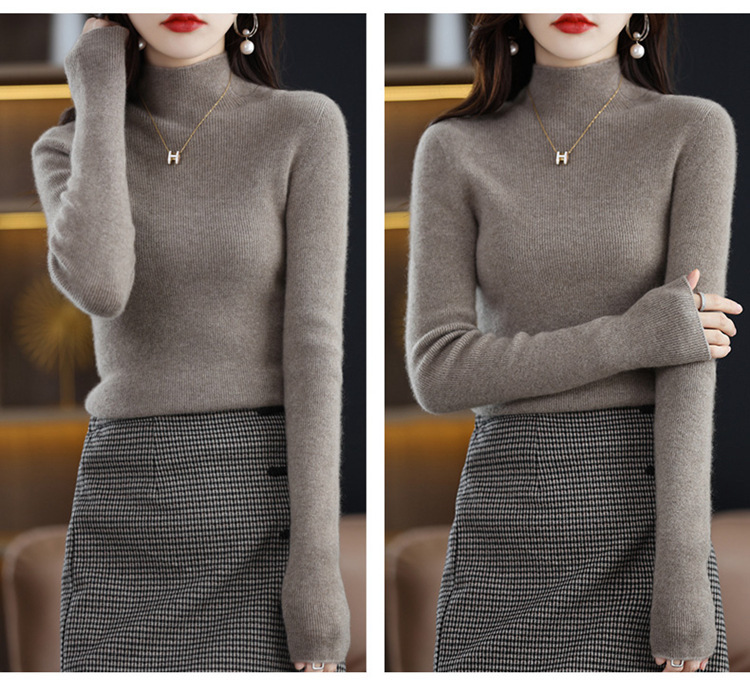 퍼스트 라인 의류 원활한 하프 터틀넥 울 스웨터 여성 풀오버 드로우 다운 스웨터 슬림 올 매치 캐시미어 니트베이스 레이어 셔츠스토어 가기