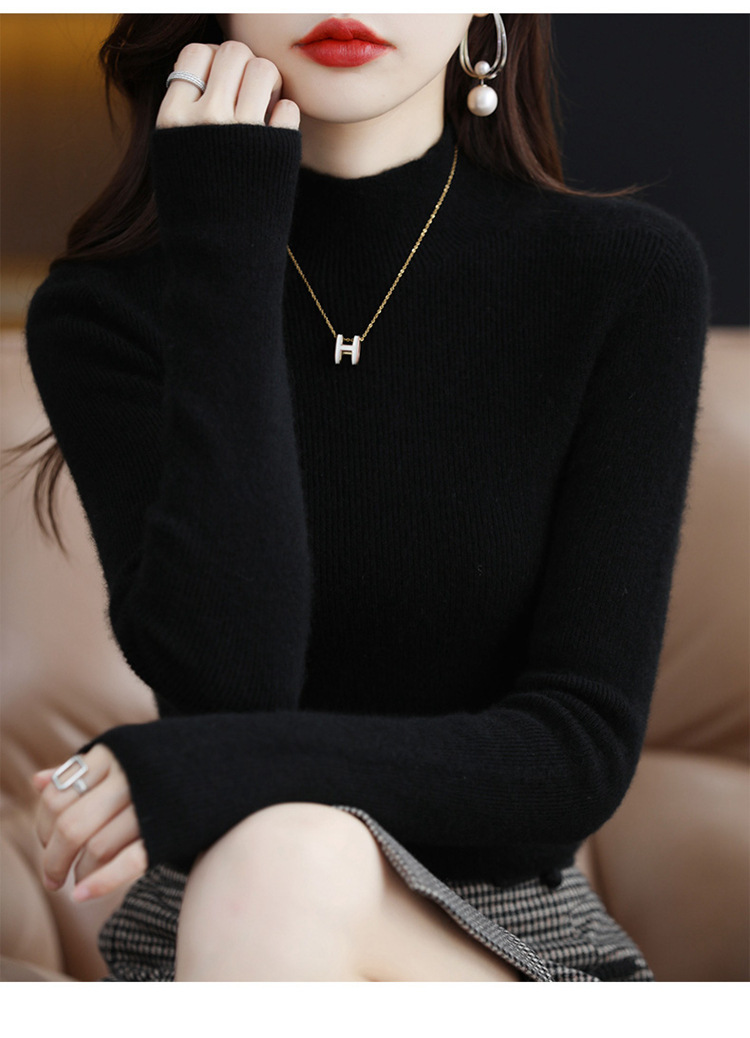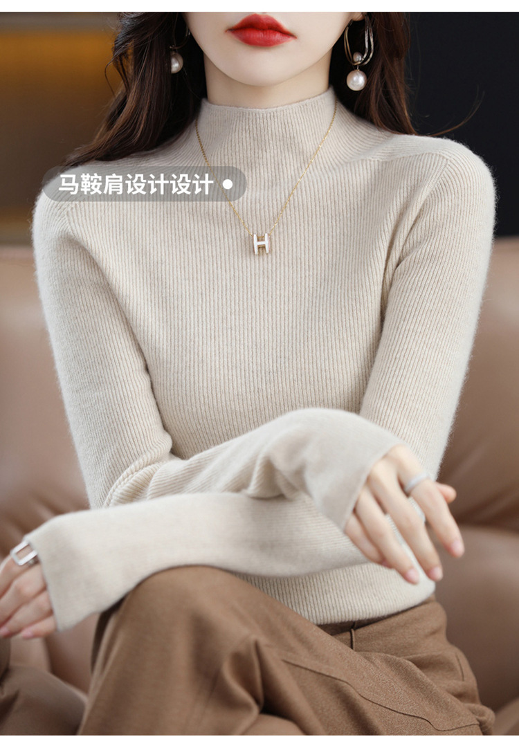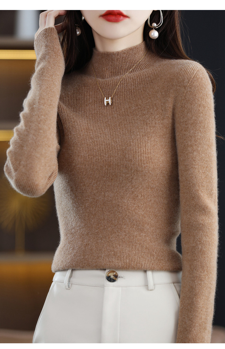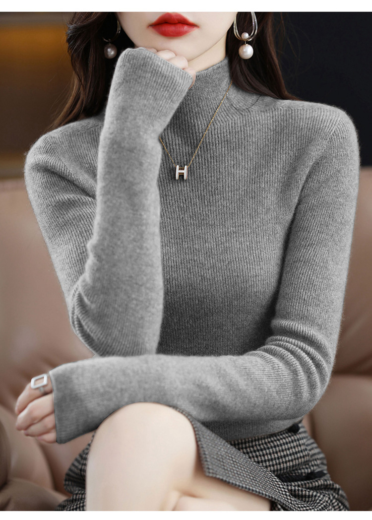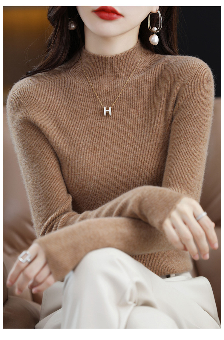 퍼스트 라인 의류 원활한 하프 터틀넥 울 스웨터 여성 풀오버 드로우 다운 스웨터 슬림 올 매치 캐시미어 니트베이스 레이어 셔츠스토어 가기