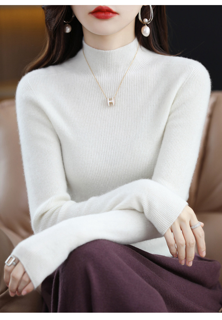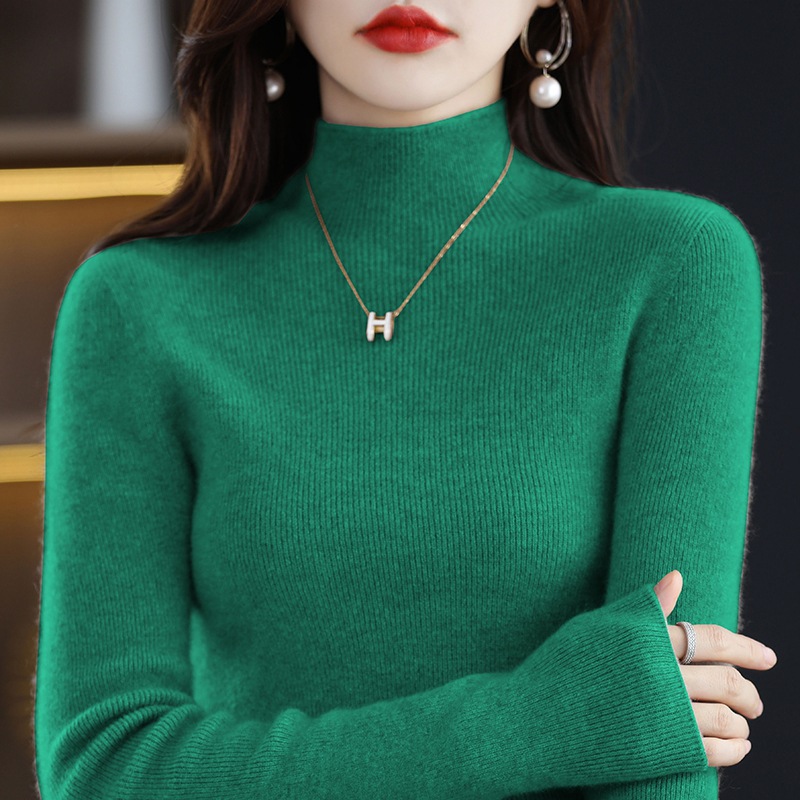 퍼스트 라인 의류 원활한 하프 터틀넥 울 스웨터 여성 풀오버 드로우 다운 스웨터 슬림 올 매치 캐시미어 니트베이스 레이어 셔츠