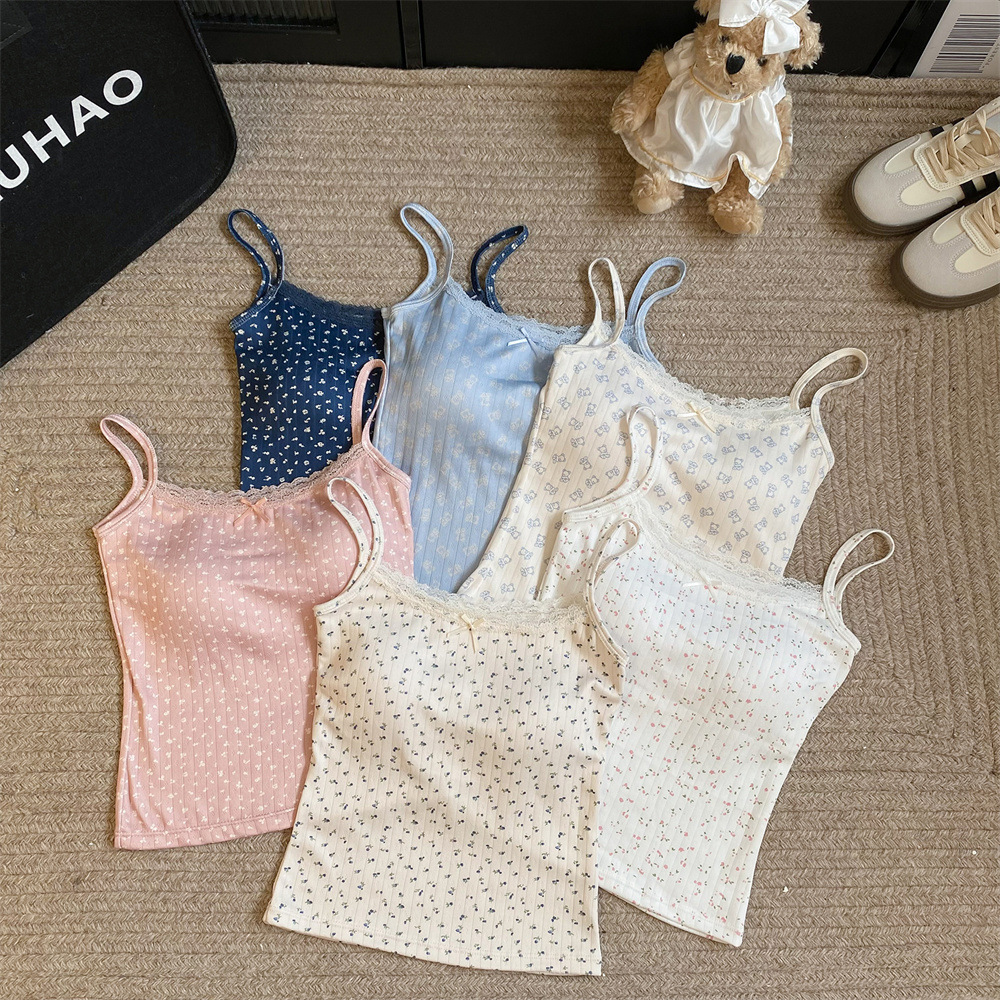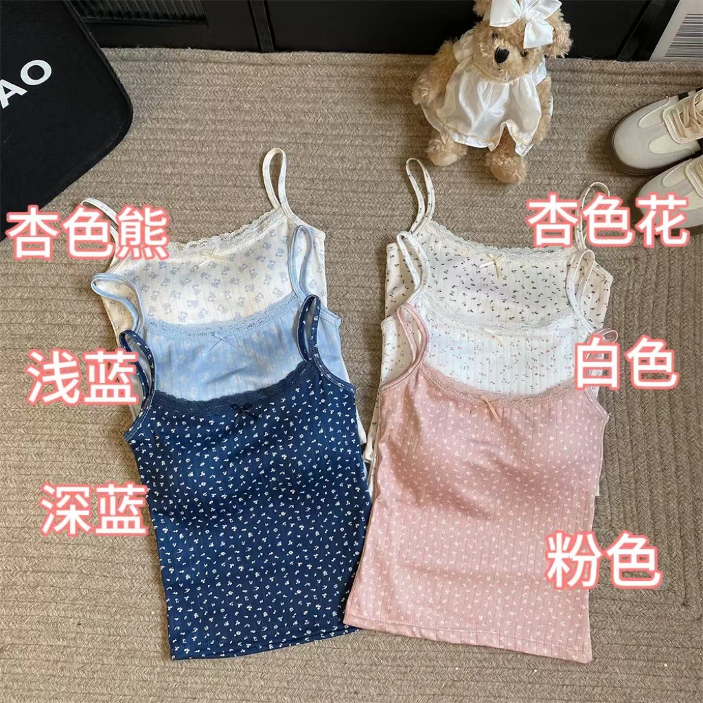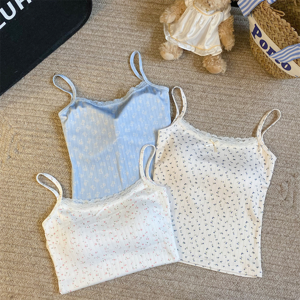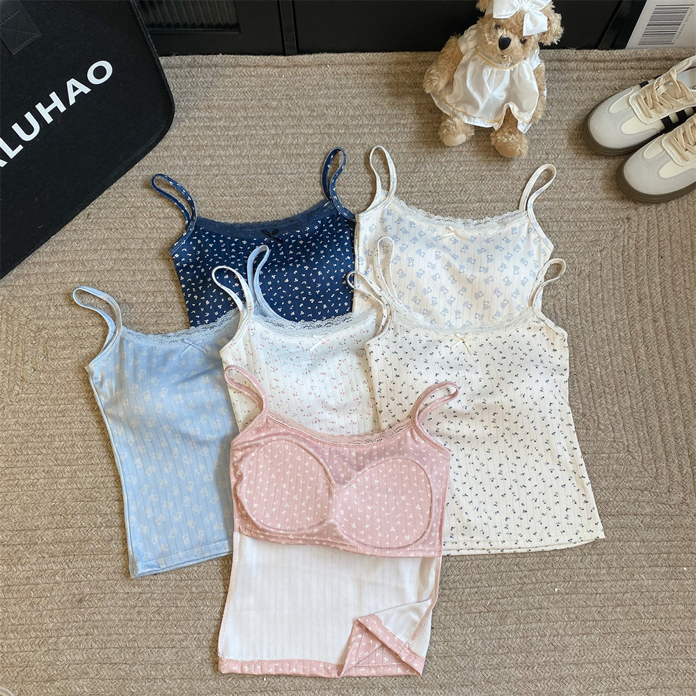 레이스 레이스 레이스 꽃 작은 슬링 조끼 가슴 패드 여성의 여름 새로운 섹시한 순수 스타일 짧은 내부 탑스토어 가기