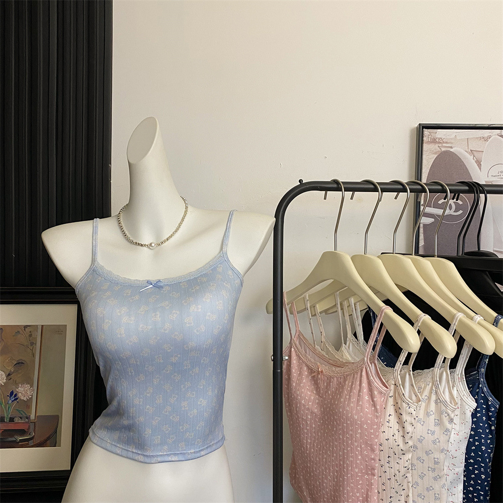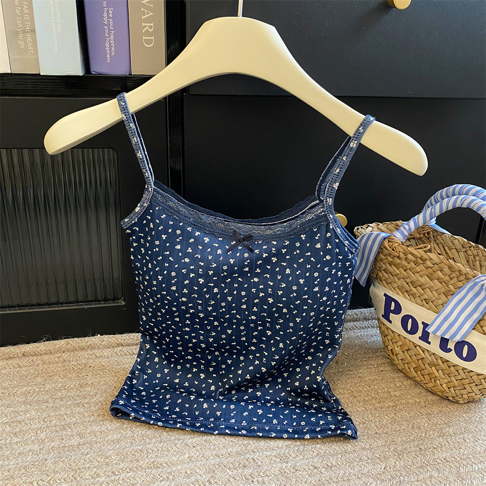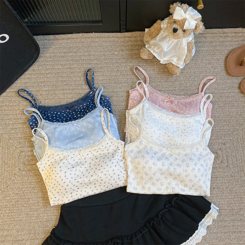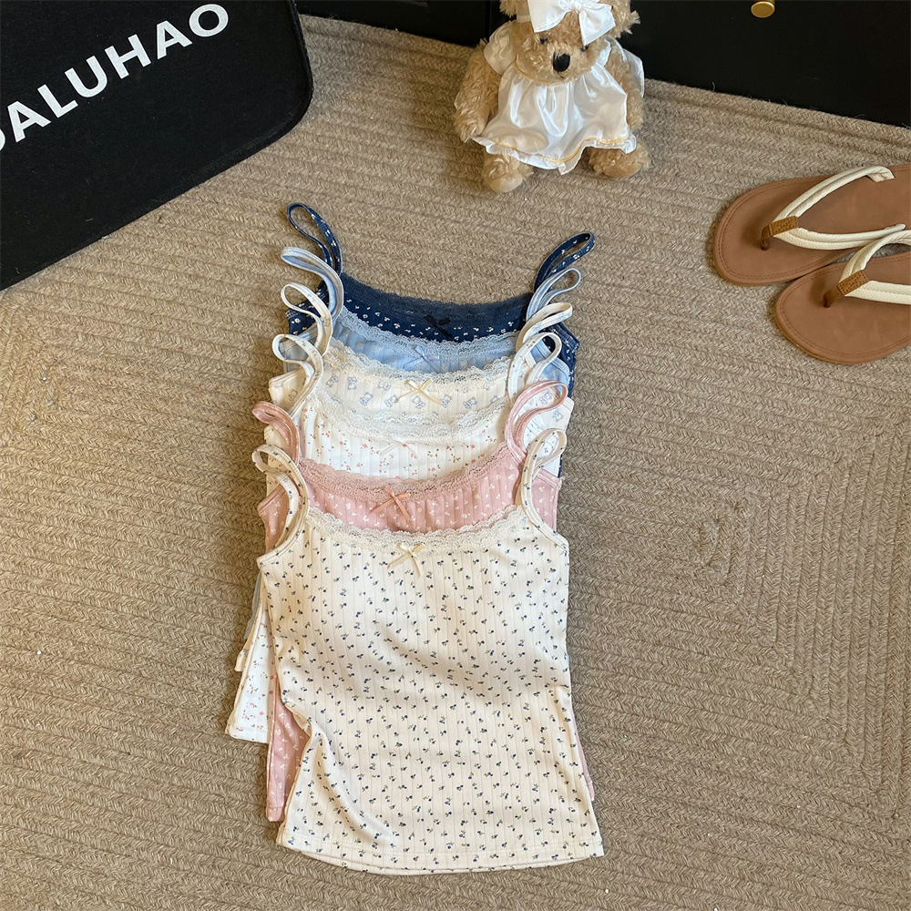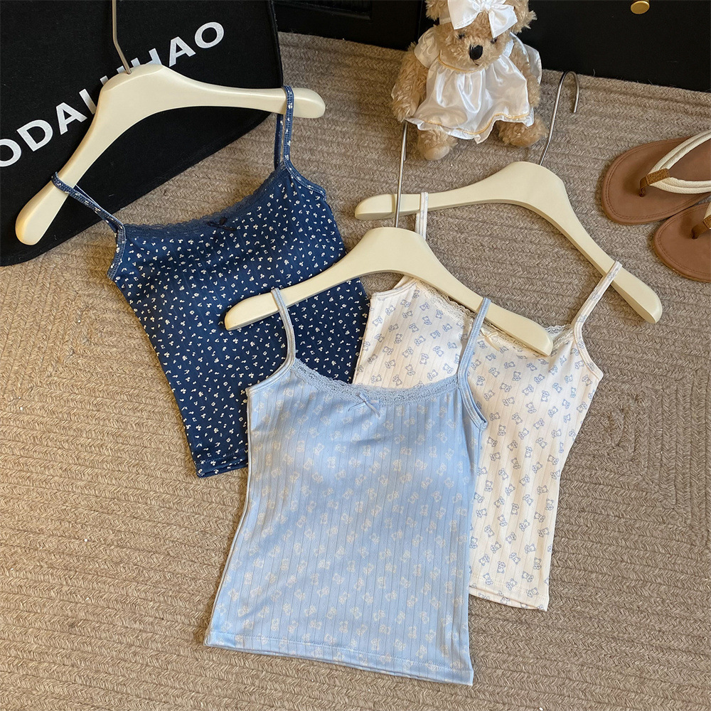 레이스 레이스 레이스 꽃 작은 슬링 조끼 가슴 패드 여성의 여름 새로운 섹시한 순수 스타일 짧은 내부 탑스토어 가기
