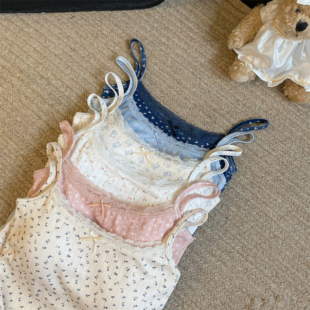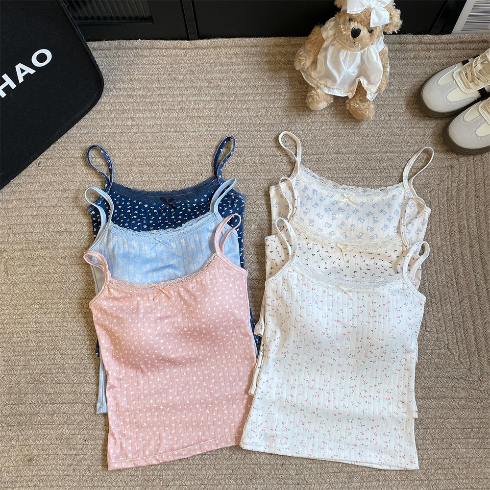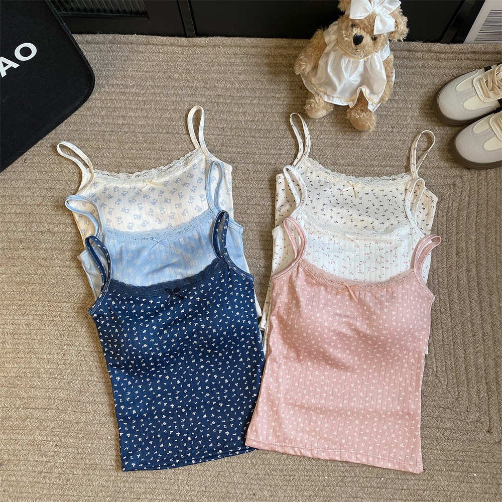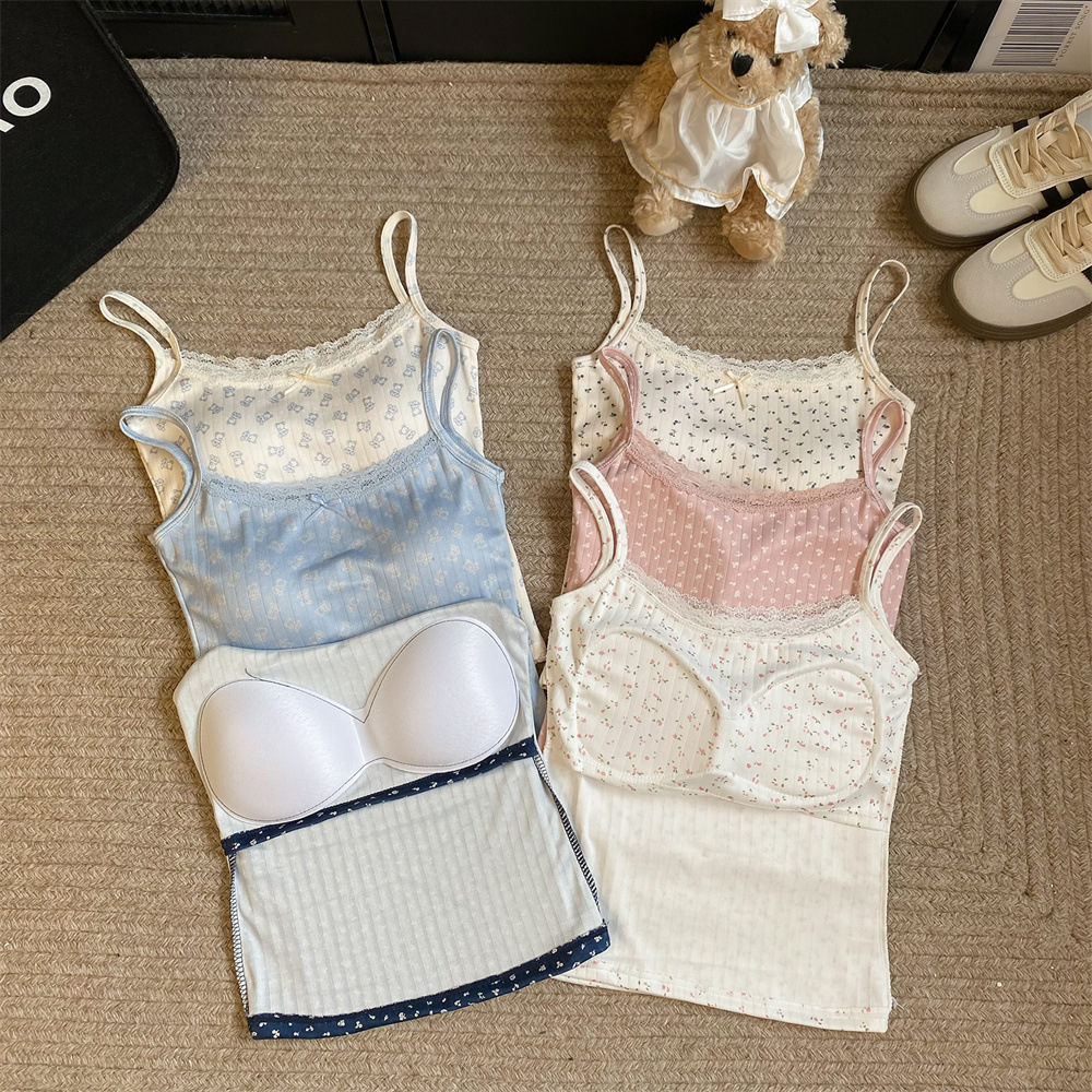 레이스 레이스 레이스 꽃 작은 슬링 조끼 가슴 패드 여성의 여름 새로운 섹시한 순수 스타일 짧은 내부 탑