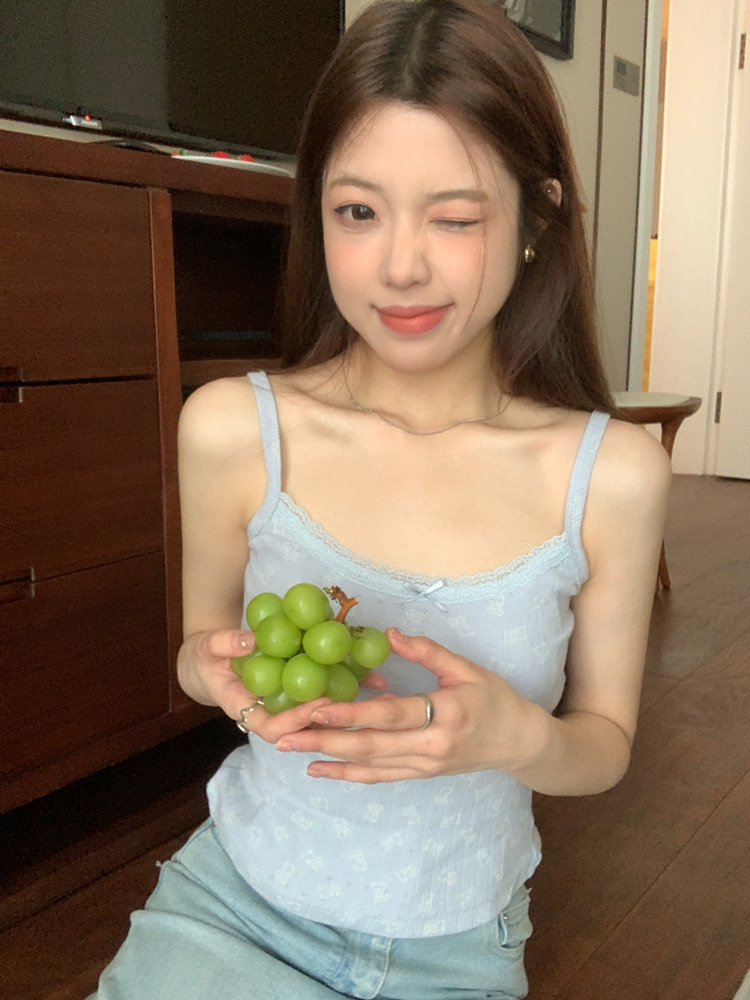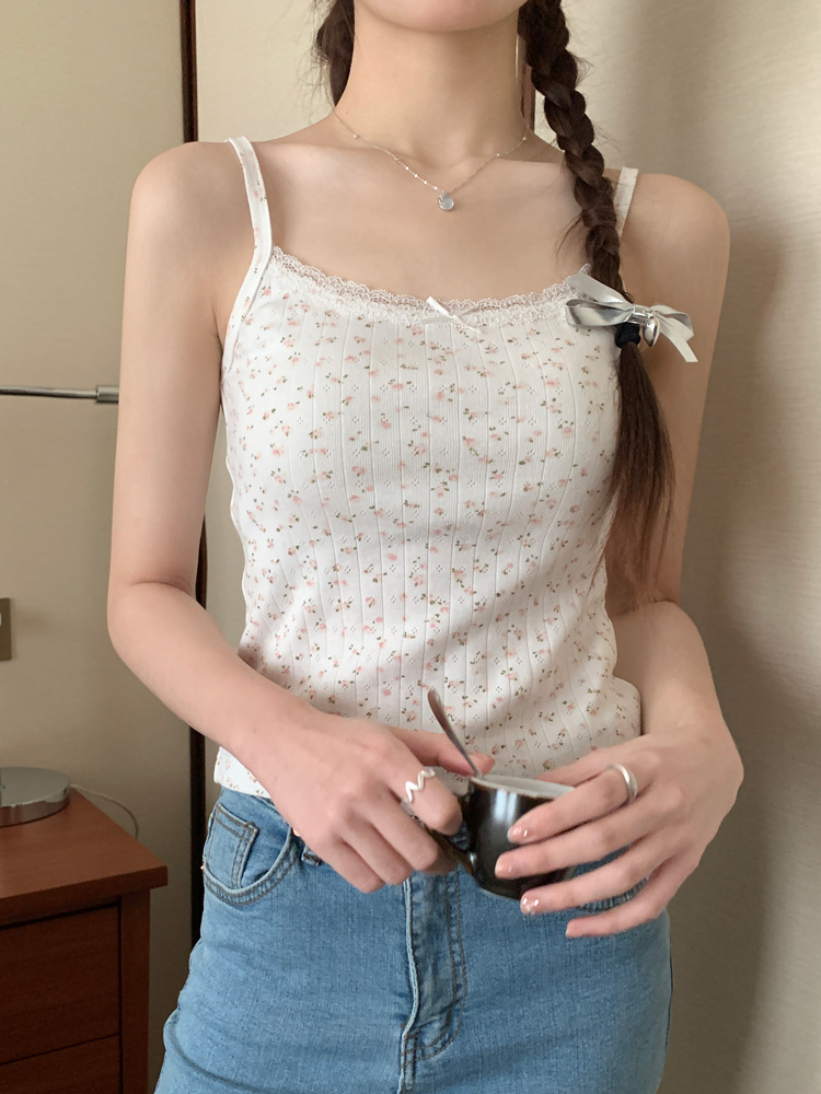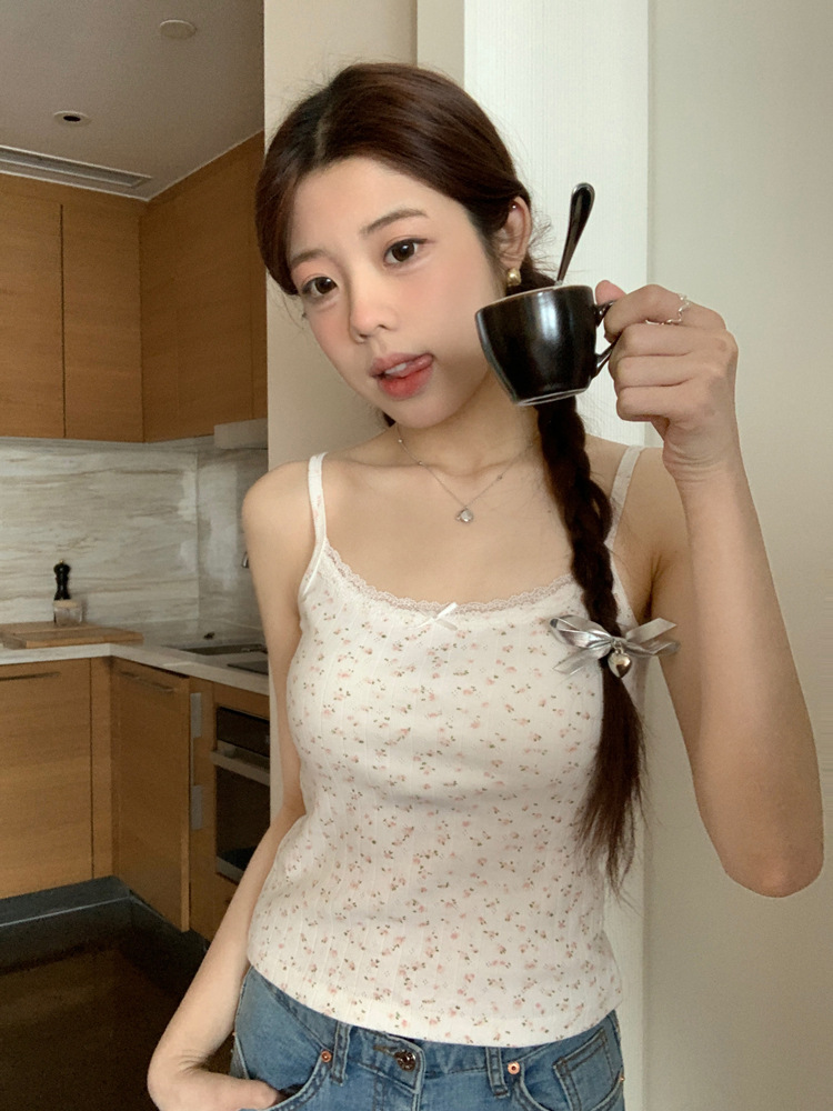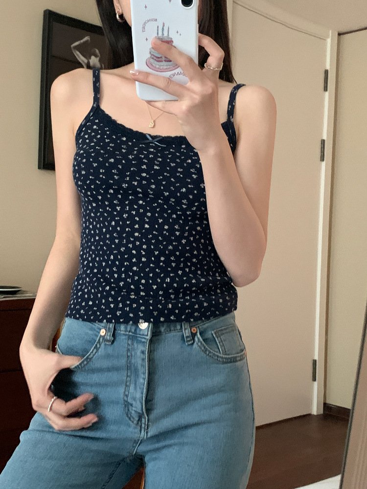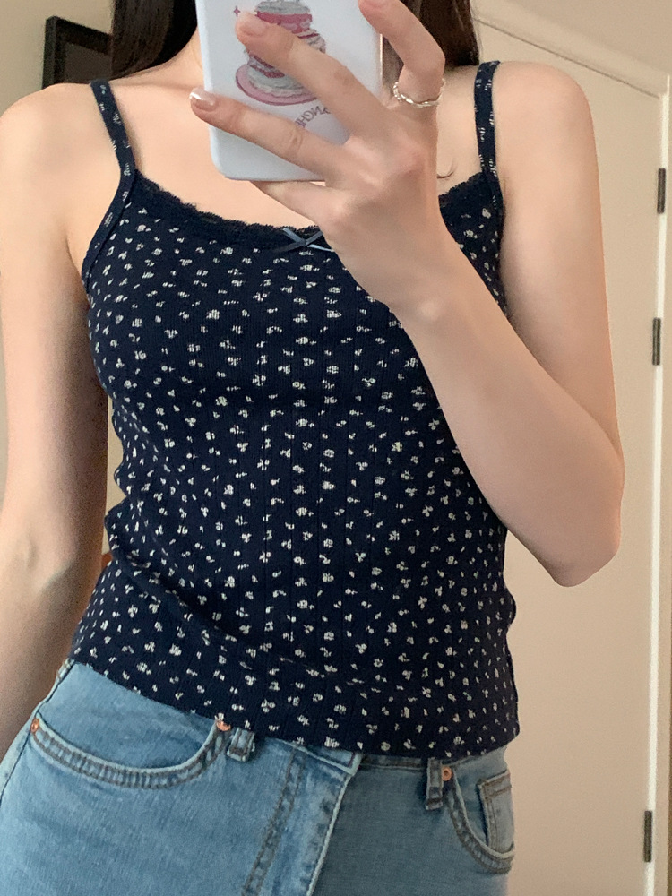 레이스 레이스 레이스 꽃 작은 슬링 조끼 가슴 패드 여성의 여름 새로운 섹시한 순수 스타일 짧은 내부 탑