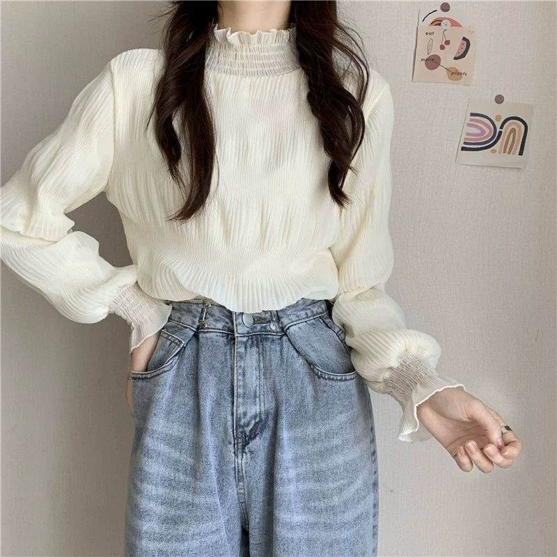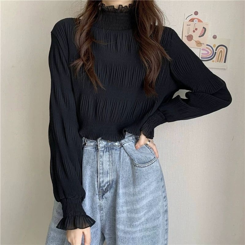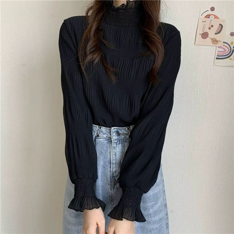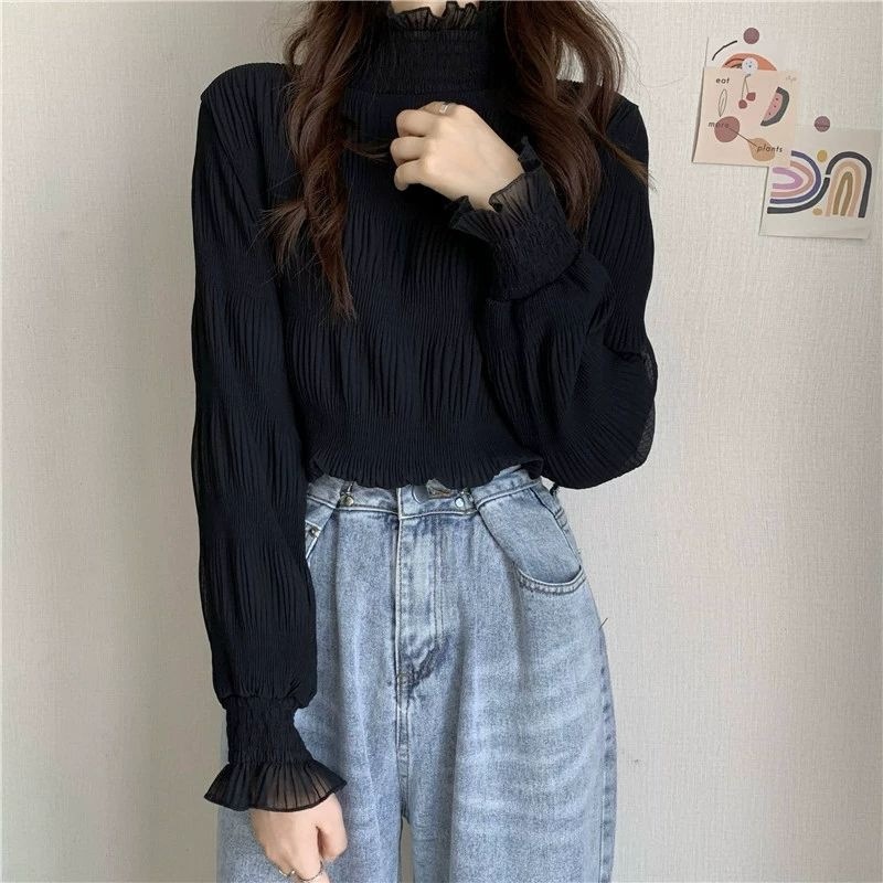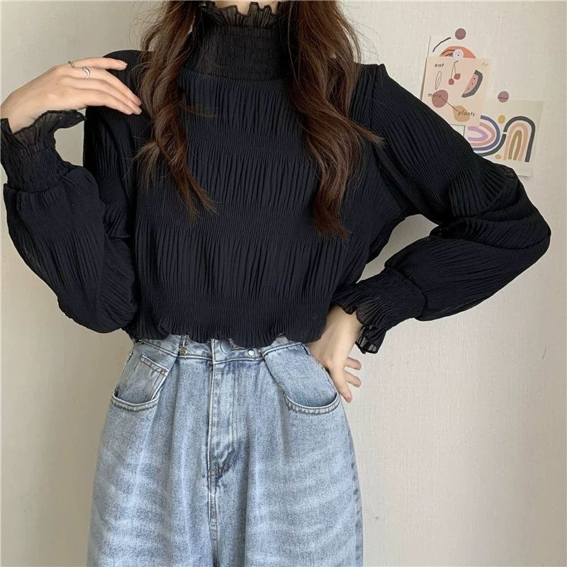 겨울 한국 스타일 2025 새로운 레이스베이스 셔츠 여성용 Ins 트렌디 모크 하이 넥 티셔츠 여성용 기모 두꺼운 따뜻한 탑스토어 가기