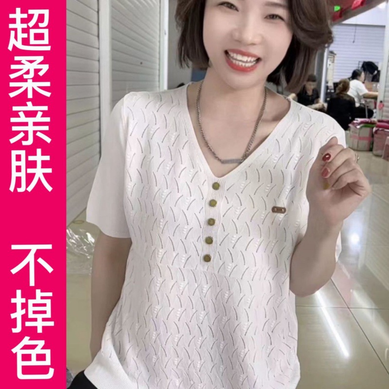 플러스 사이즈 여름 플러스 사이즈 플러스 사이즈 반팔 아이스 실크 셔츠 느슨한 배 컬러 슬리밍 아이스 실크 탑 크로스 국경스토어 가기