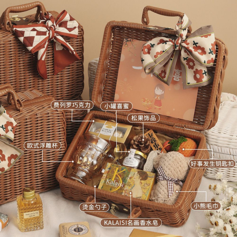 동반 행사 여성 신부 들러리 결혼식 실용적인 결혼식 하이 엔드 등나무 수제 바구니 신부 절묘한 선물 상자