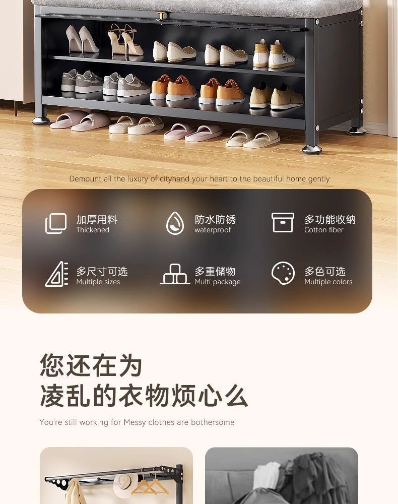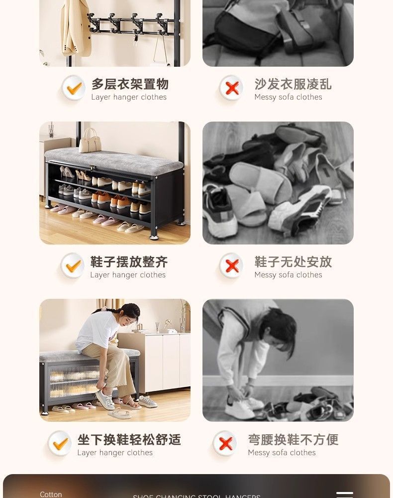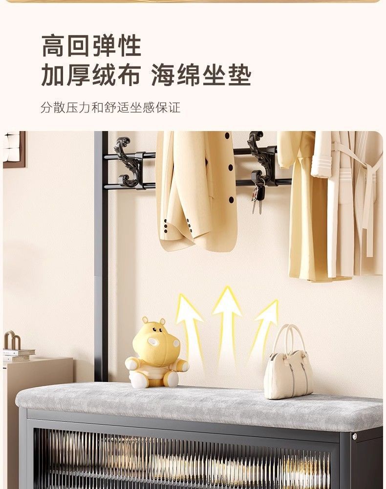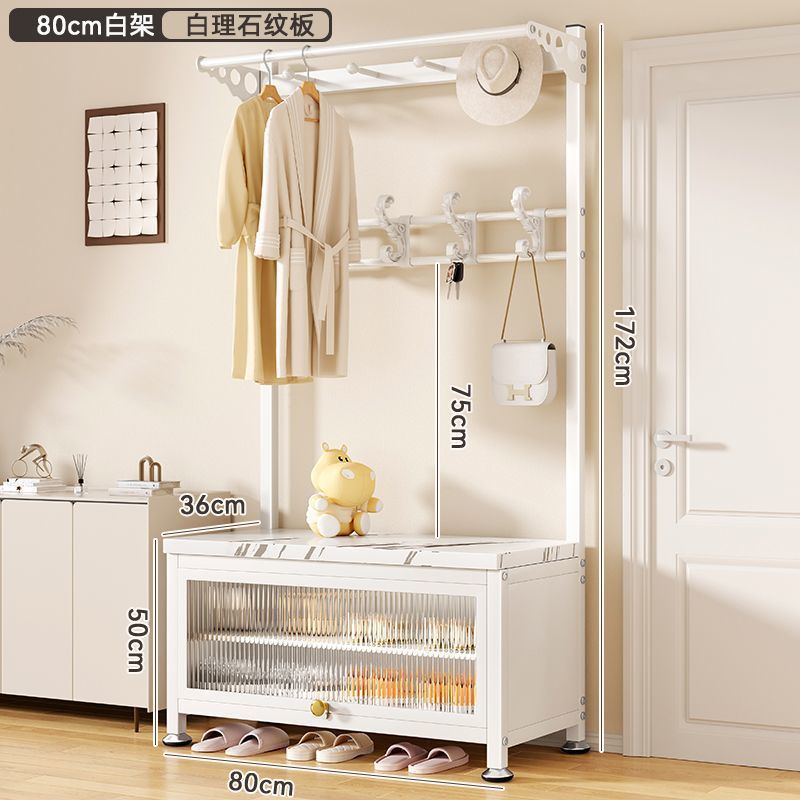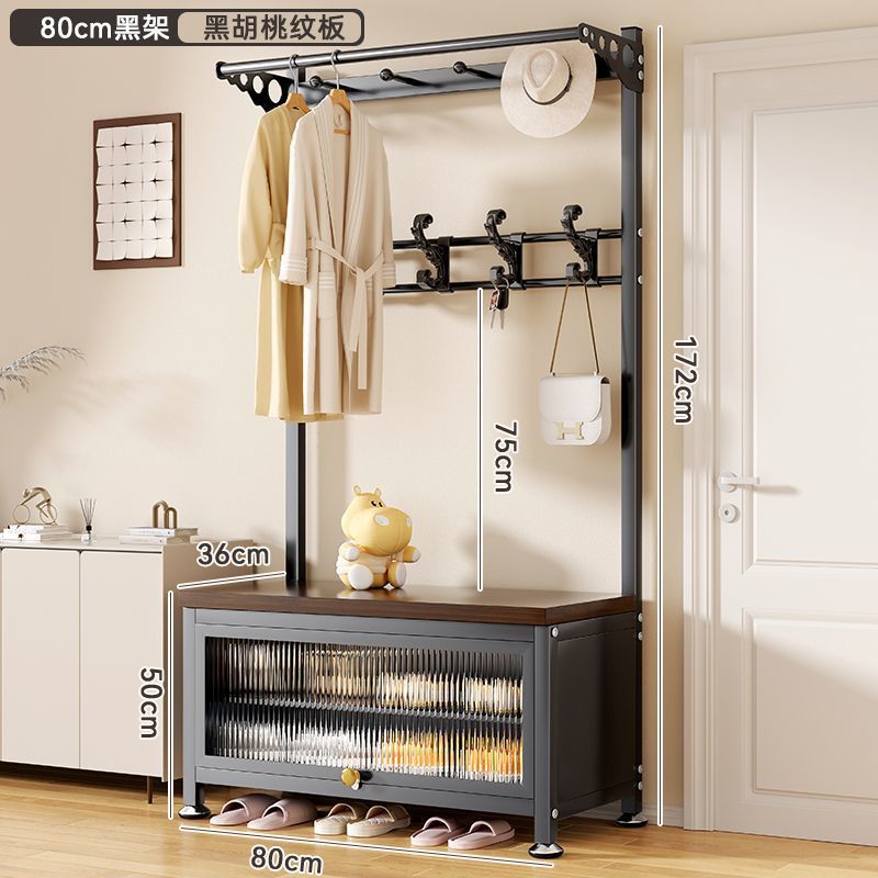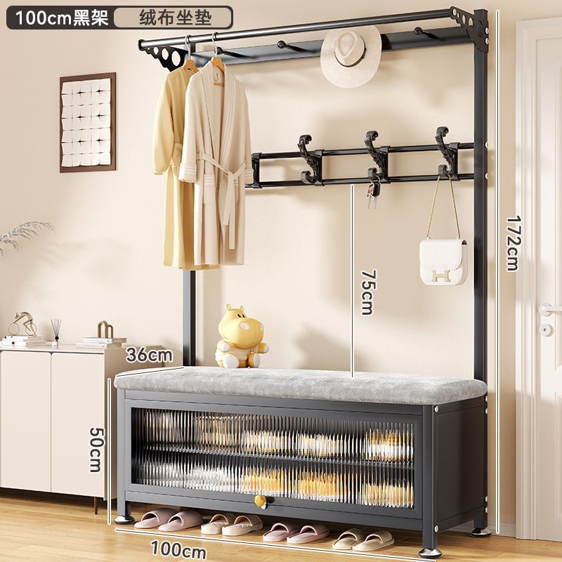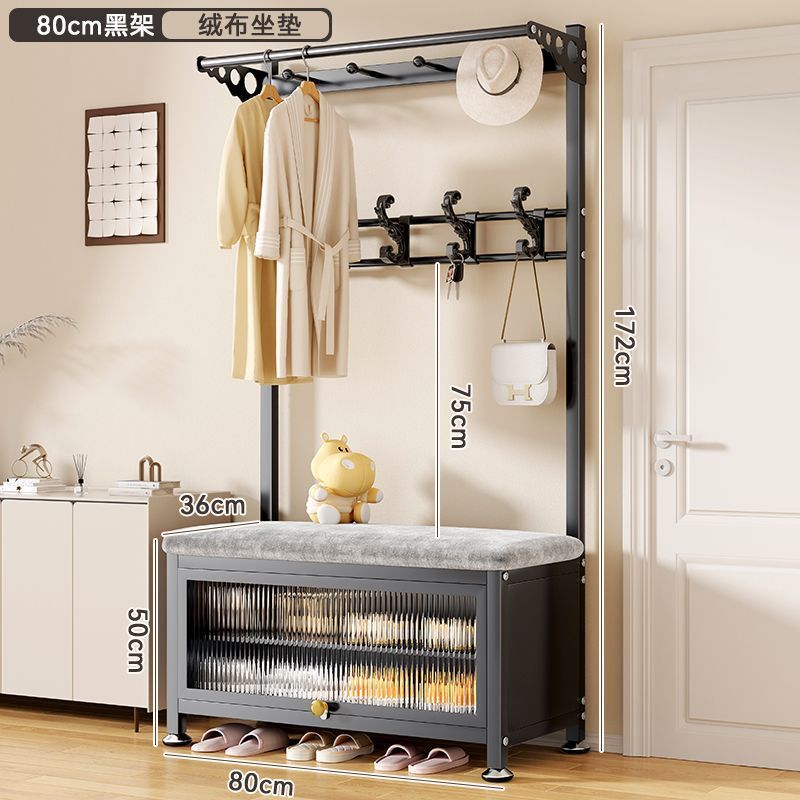 간단한 신발 랙 걸이 코트 랙 바닥 입구 홀 침실 도어 신발 변경 의자 통합 간단한 코트 랙스토어 가기