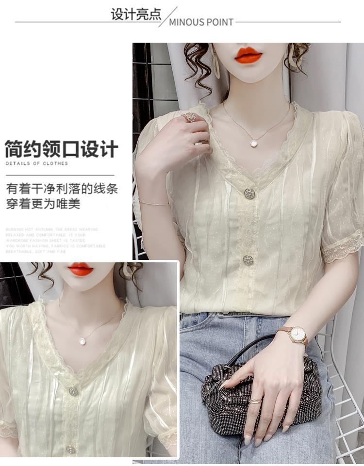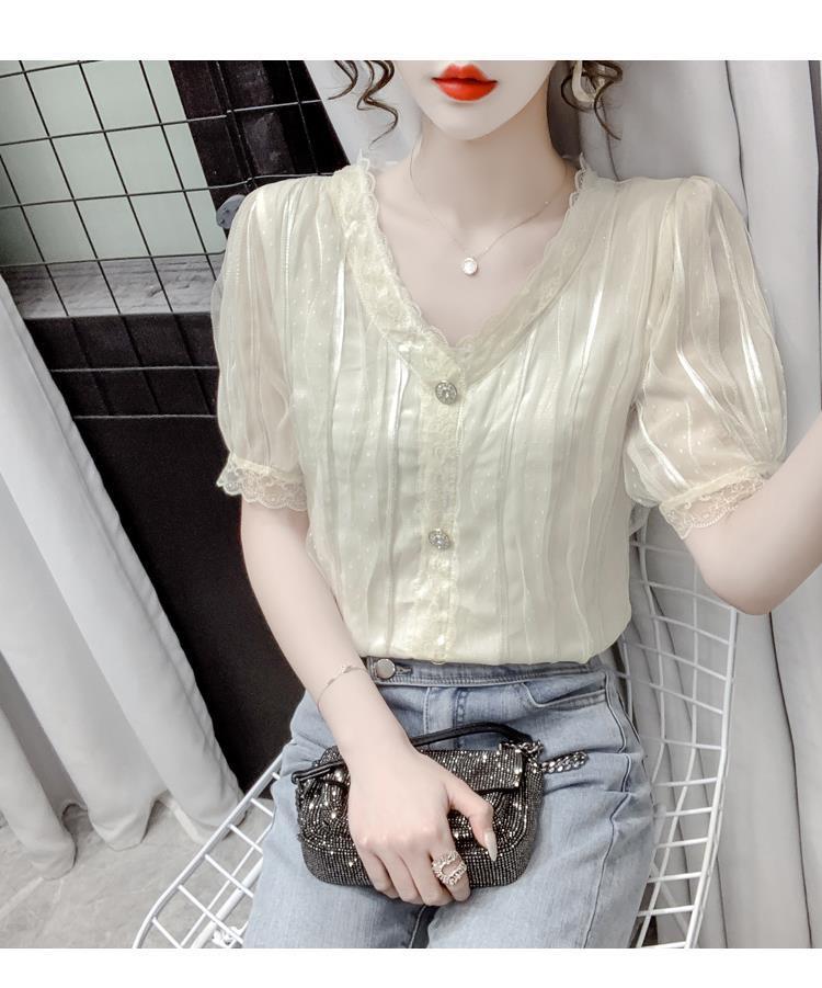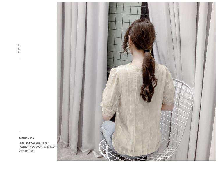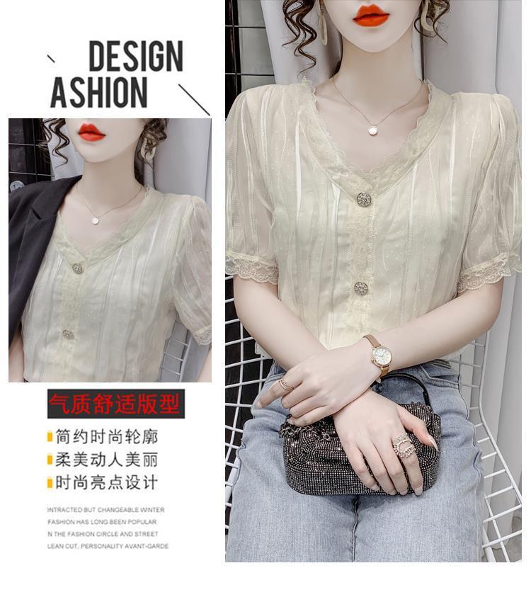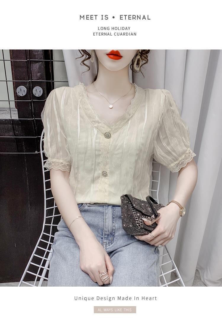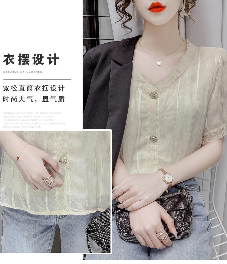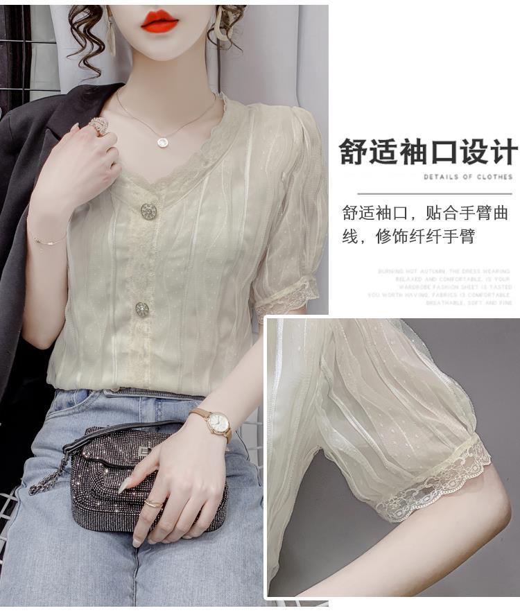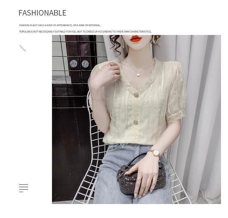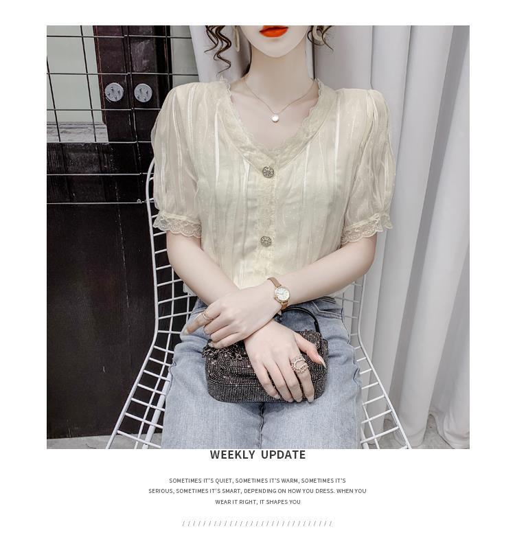 프랑스 반팔 쉬폰 셔츠 여성 여름 2025 새로운 스타일 디자인 센스 레이스 탑 서양식 연령 감소 셔츠스토어 가기