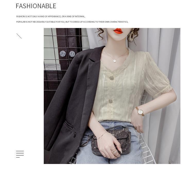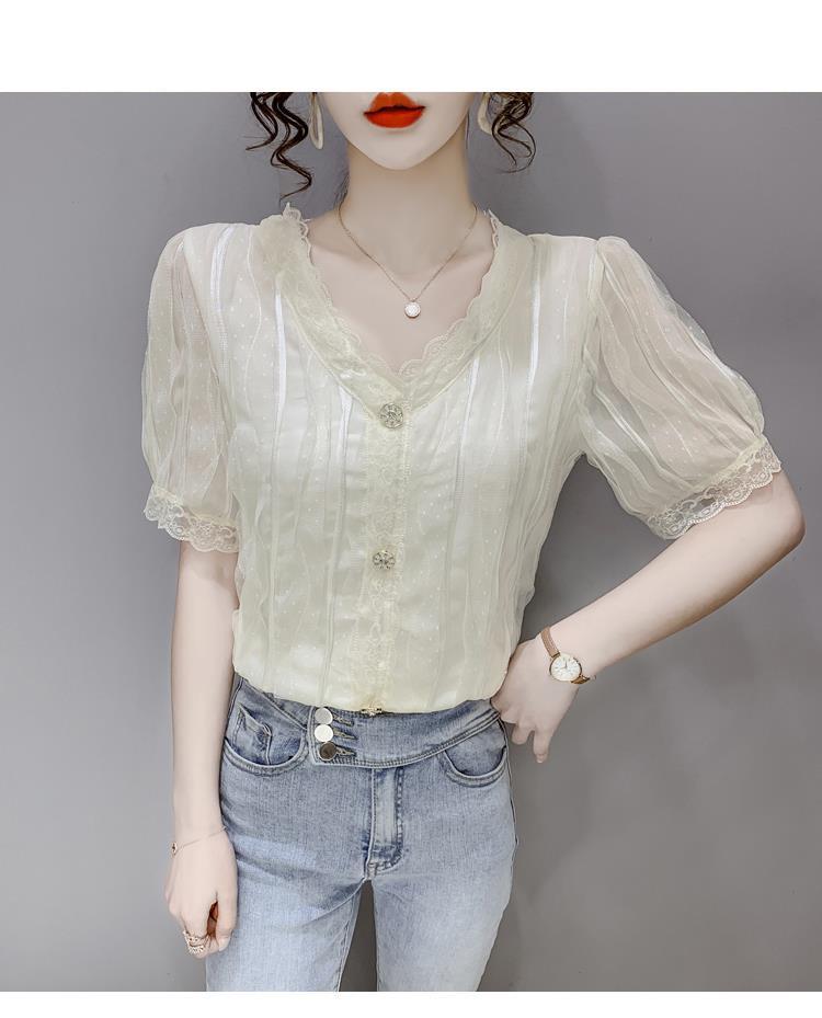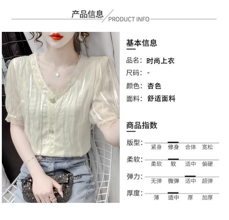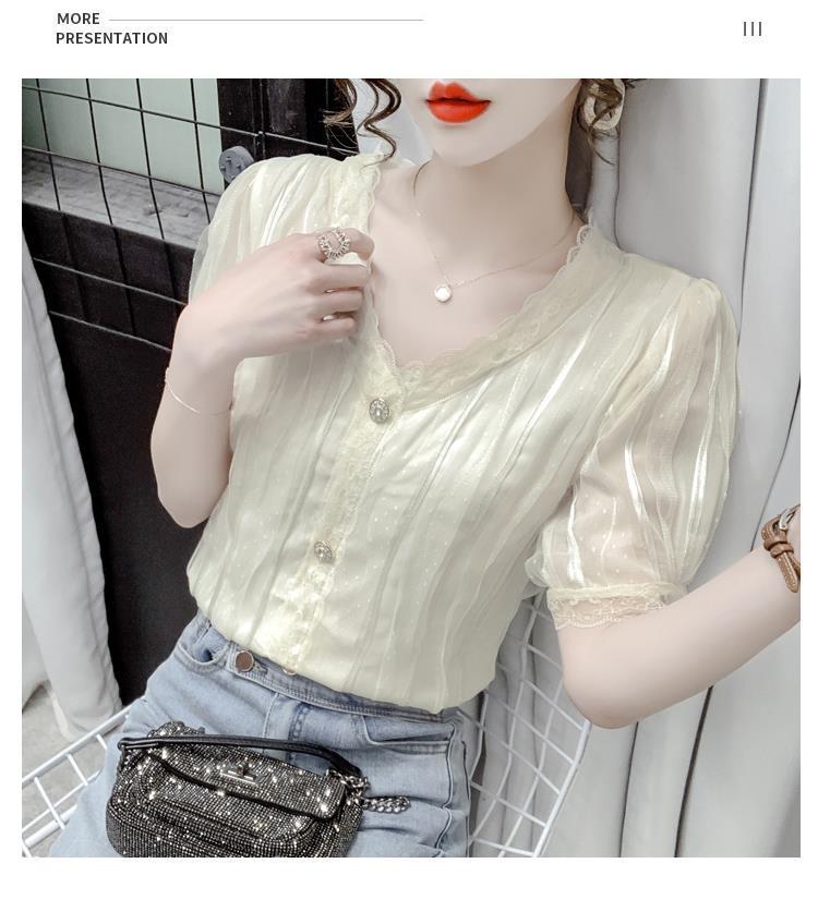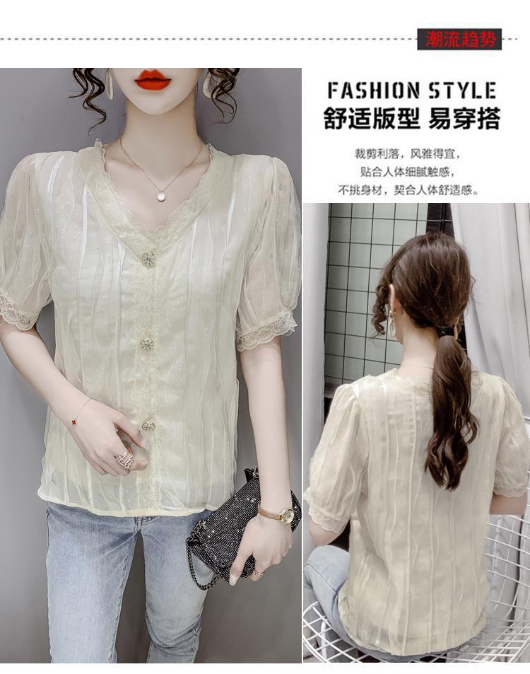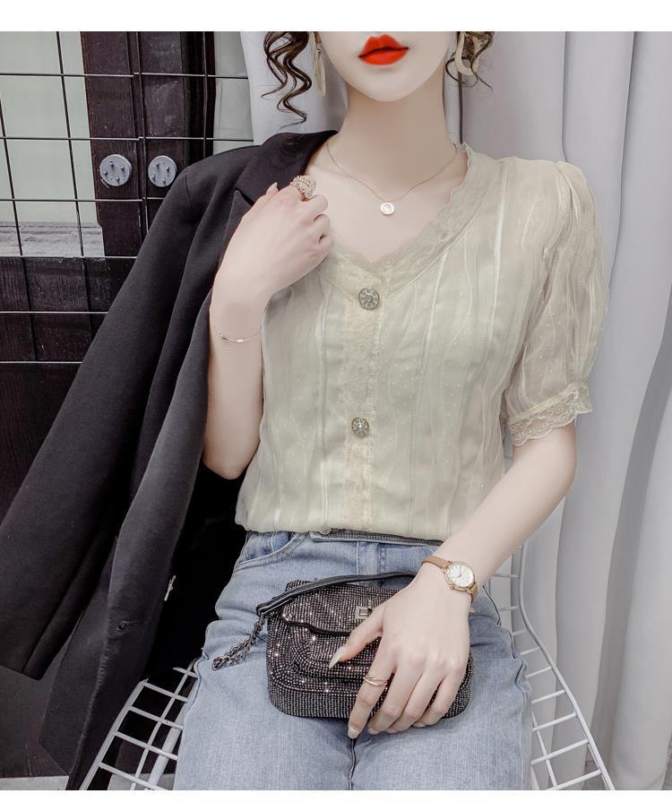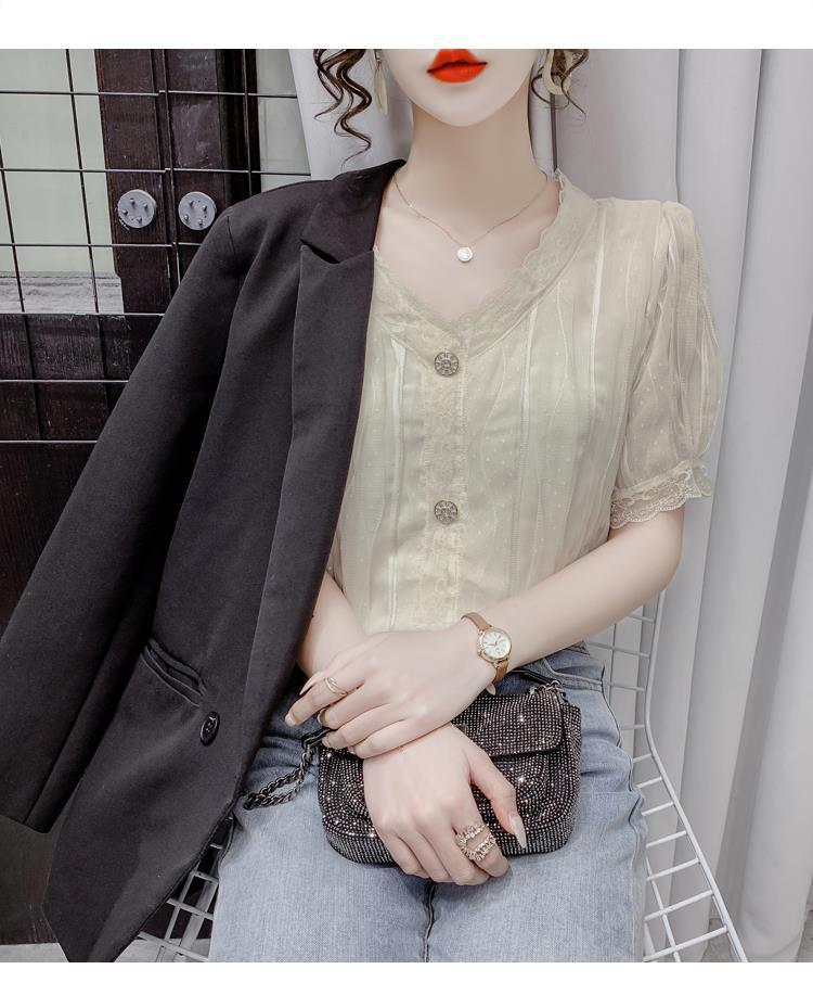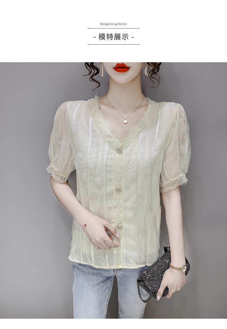 프랑스 반팔 쉬폰 셔츠 여성 여름 2025 새로운 스타일 디자인 센스 레이스 탑 서양식 연령 감소 셔츠스토어 가기