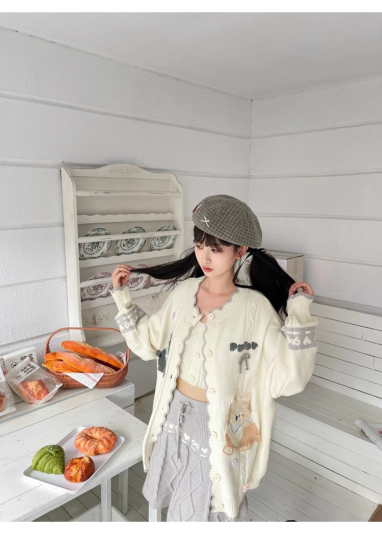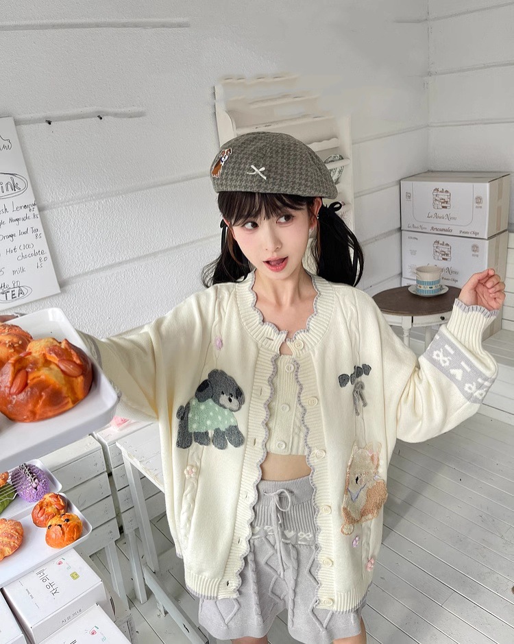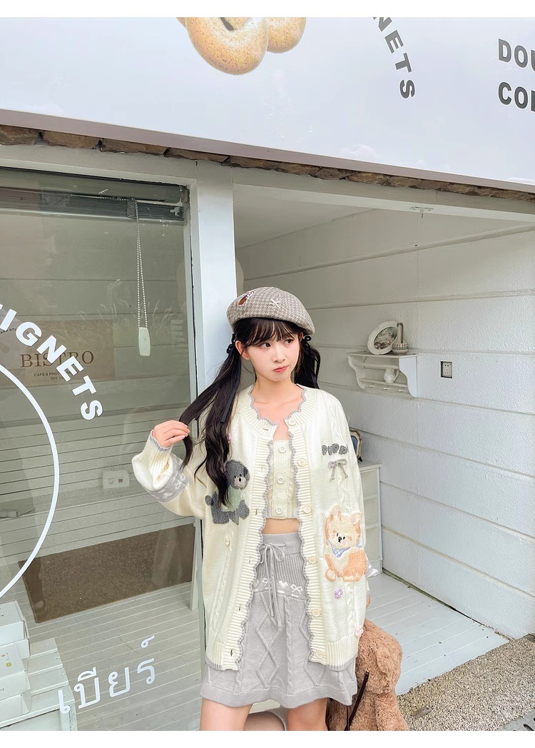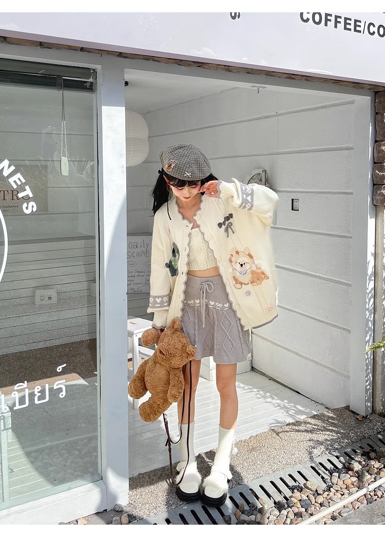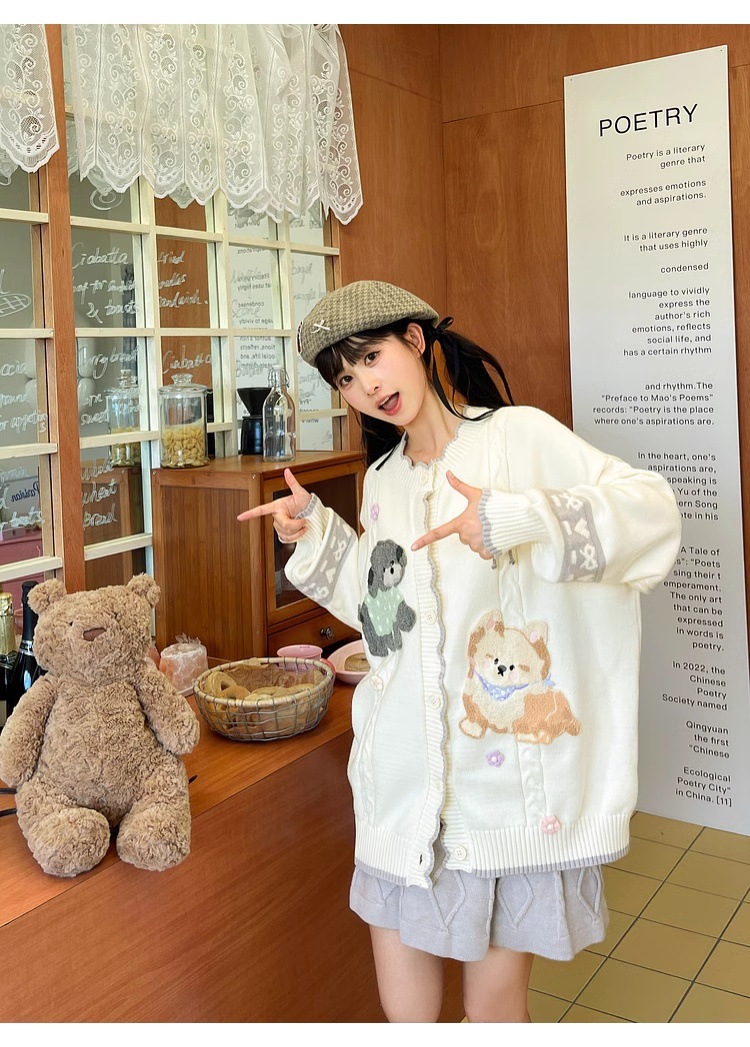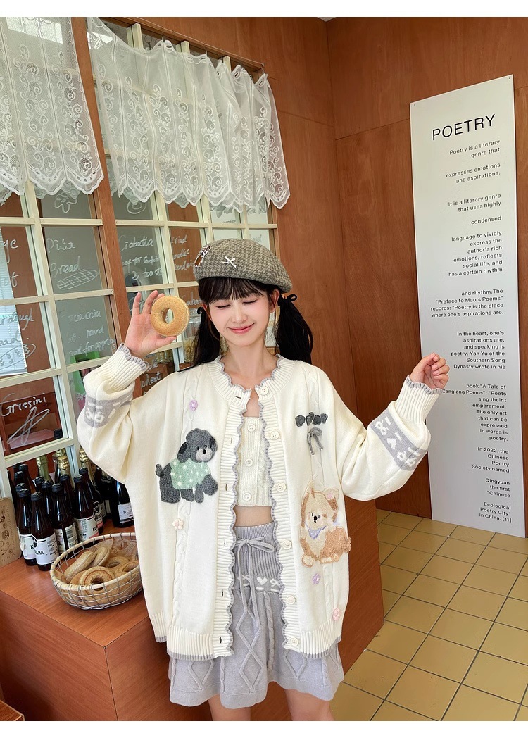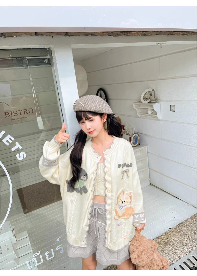 귀여운 강아지 자수 스웨터 니트 카디건 작은 꽃 입체 장식 귀여운 코트 따뜻한스토어 가기