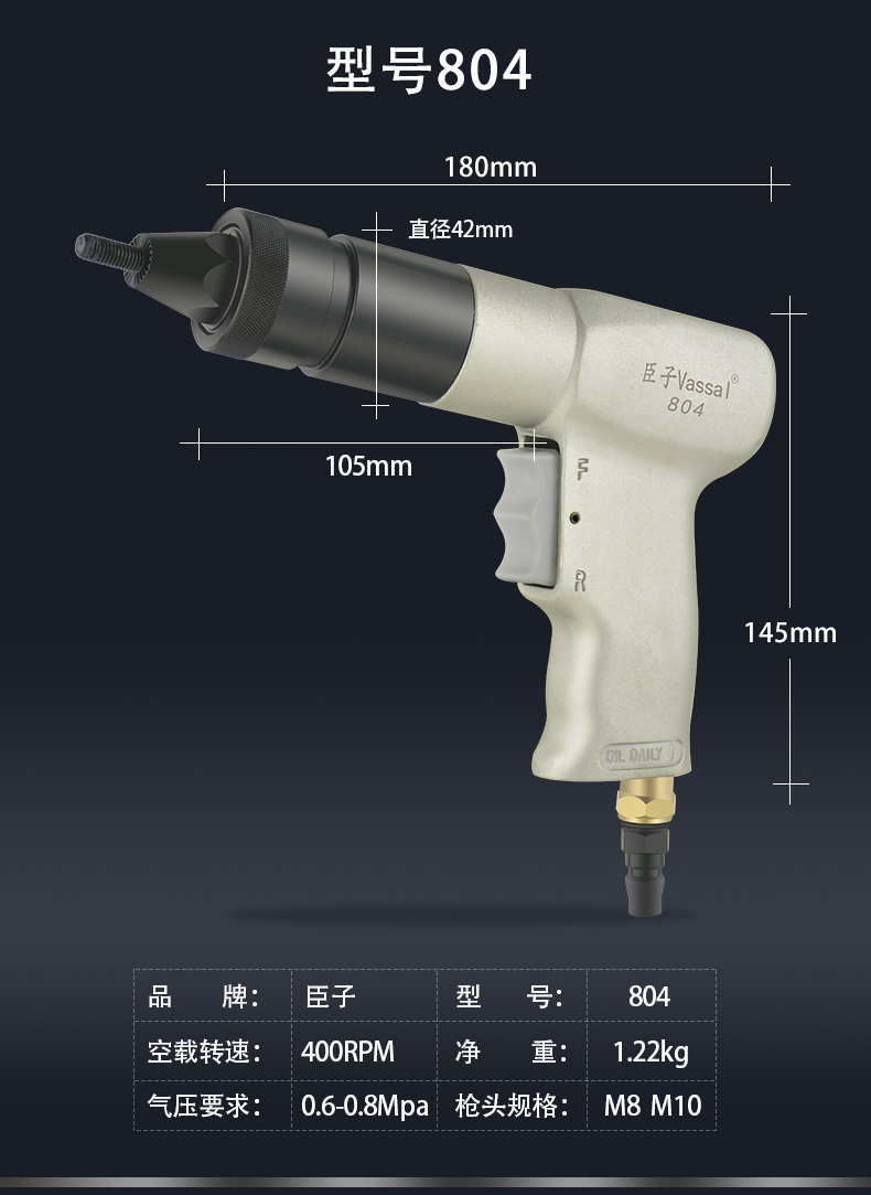 • Chenzi 전문 공압 너트 건 804 + M8 건 헤드 + 무료 착용 부품 패키지