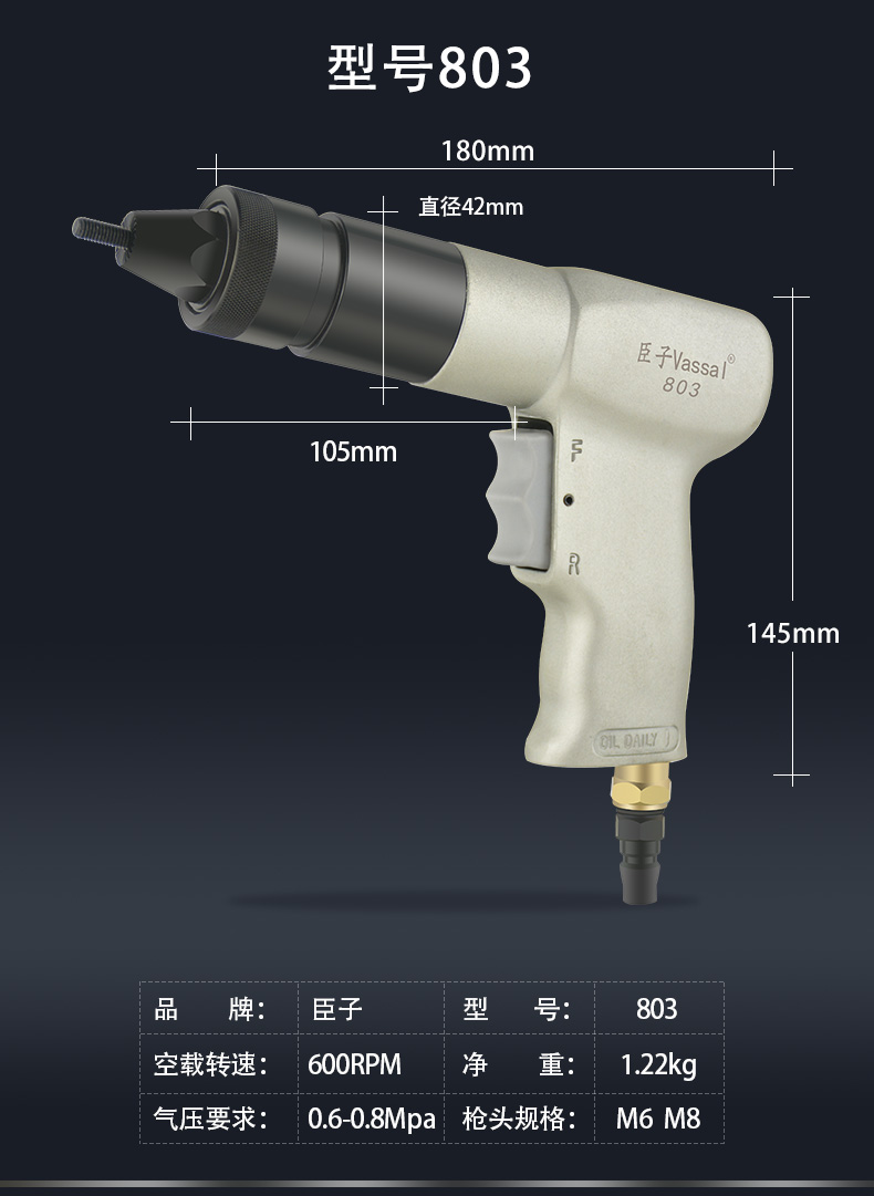 • Chenzi 전문 공압 너트 건 803 + M6 건 헤드 + 무료 착용 부품 패키지