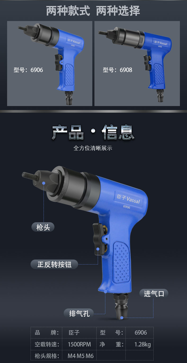 • Chenzi 산업용 등급 공압 너트 건 6906 + M6 건 헤드 + 무료 착용 부품 패키지