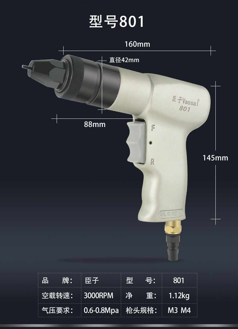 • Chenzi 전문 공압 너트 건 801 + M3 건 헤드 + 무료 착용 부품 패키지