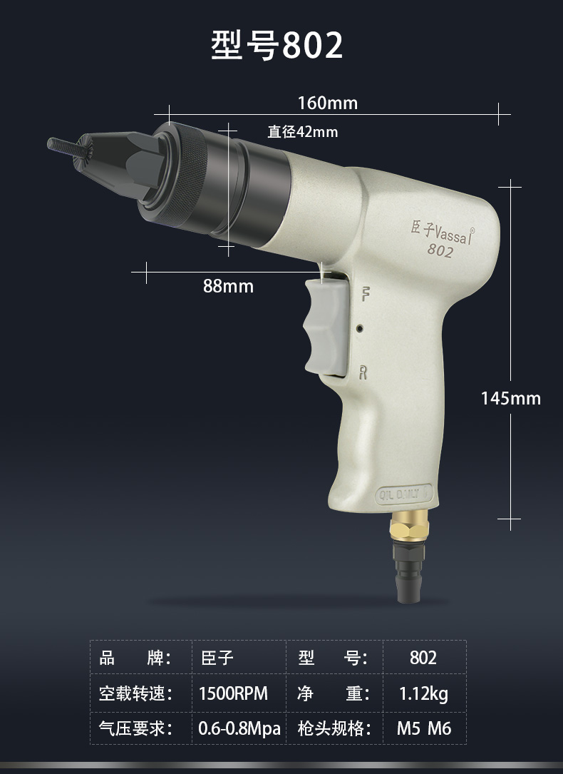 • Chenzi 전문 공압 너트 건 802 + M5 건 헤드 + 무료 착용 부품 패키지