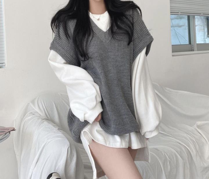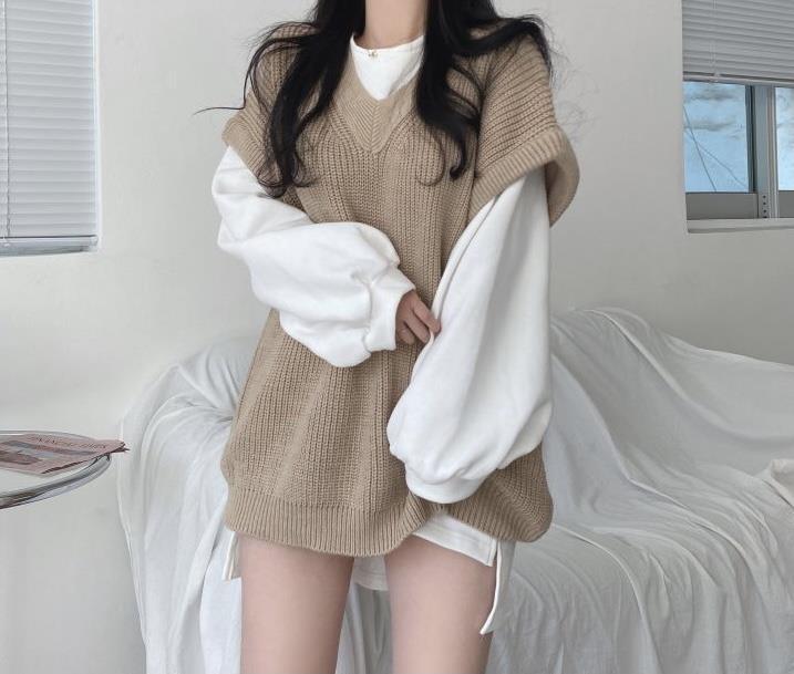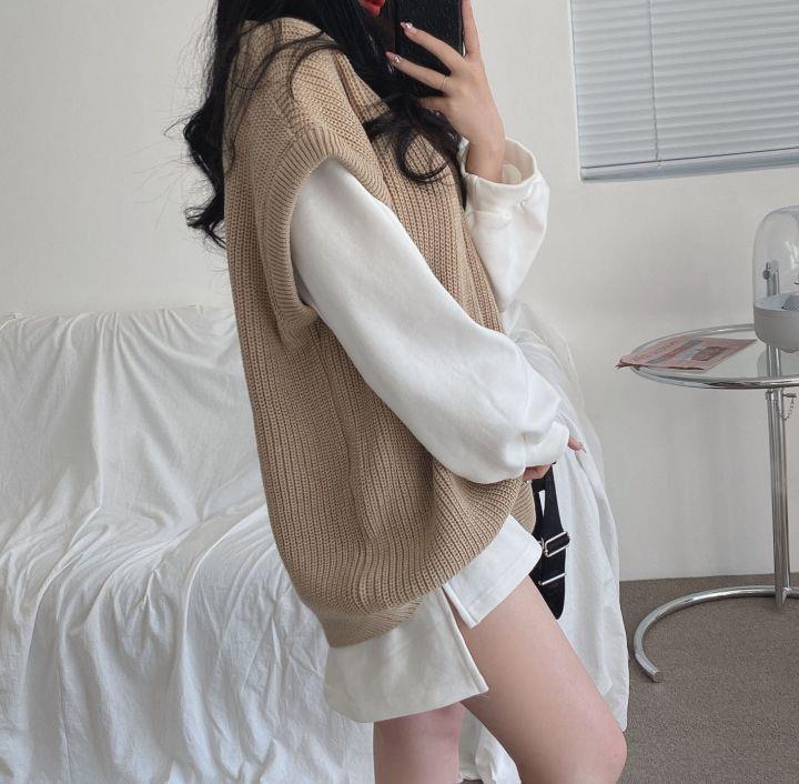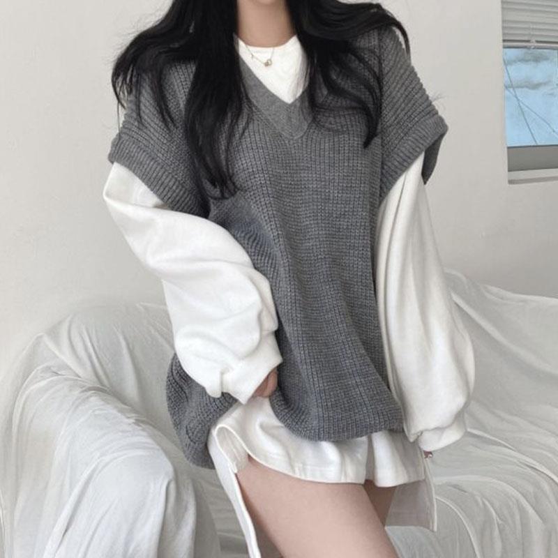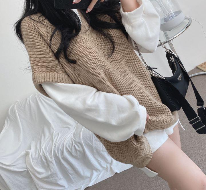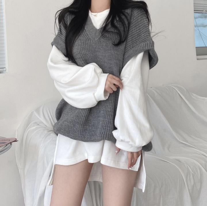 원피스/세트 2024 봄과 가을 한국 스타일 프랑스 분할 긴 소매 탑 캐주얼 니트 스웨터 조끼 여성 패션스토어 가기