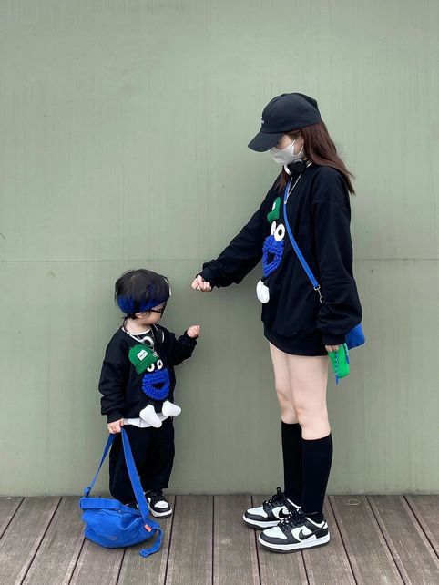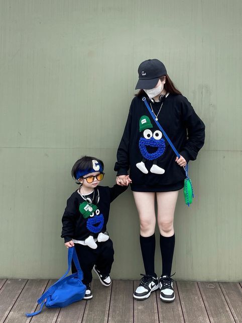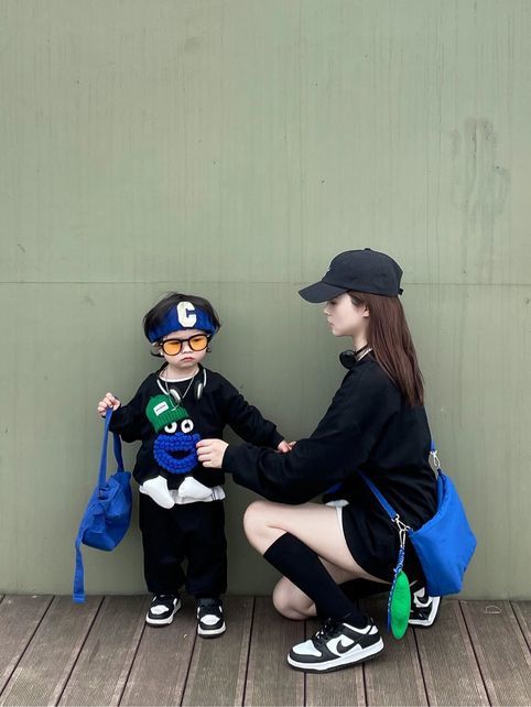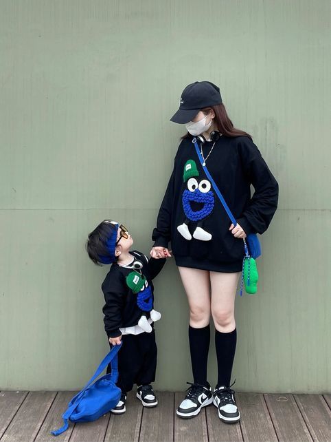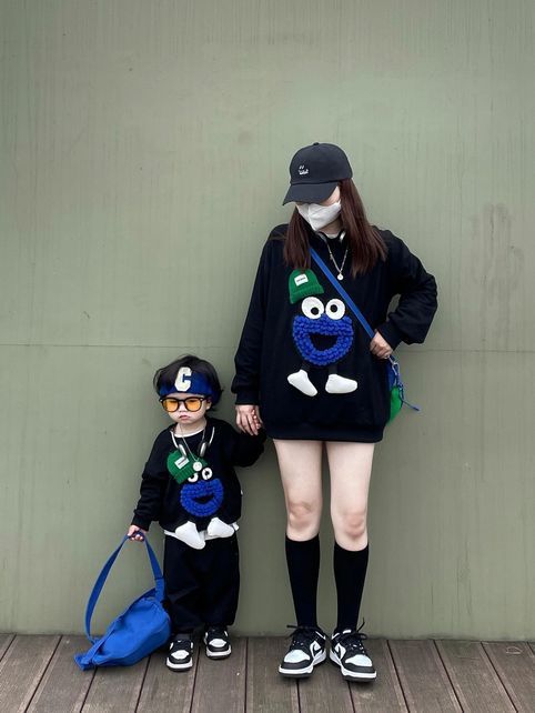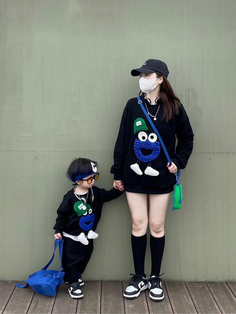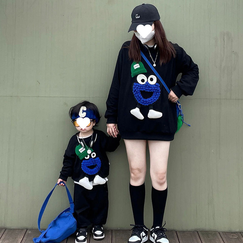 봄 원피스 2025 새로운 흑인 부모-자식 원피스 어머니-딸 봄 스웨터 세 가족 원피스 패션스토어 가기