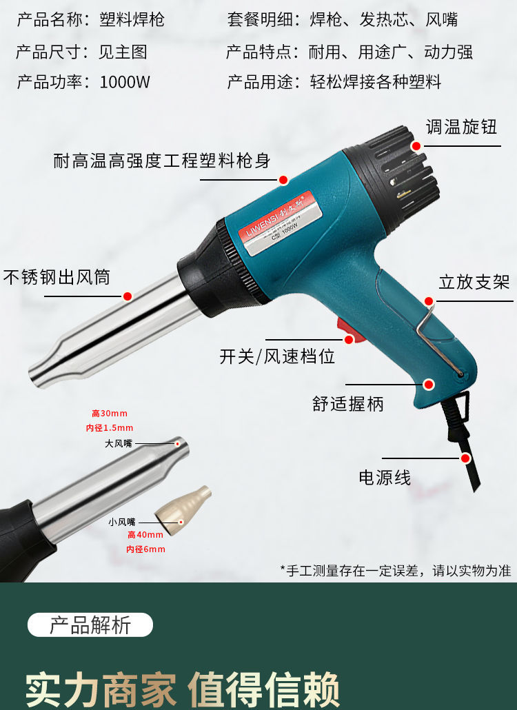 산업 등급 플라스틱 용접 총 1000W 뜨거운 공기 총 자동차 범퍼 용접 플라스틱 수동 DIY 무한 온도 조정