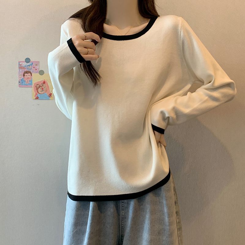 2024 플러스 사이즈 여성의 가을과 겨울 새로운 패션 라운드 넥 슬림 한 나이-스웨터 풀오버 지방 자매 탑 감소스토어 가기