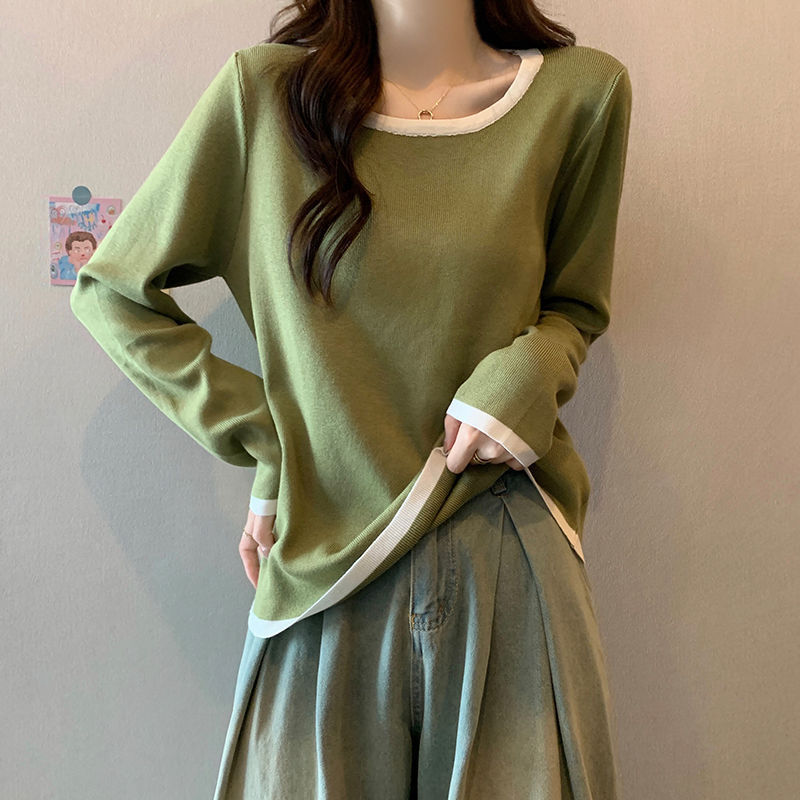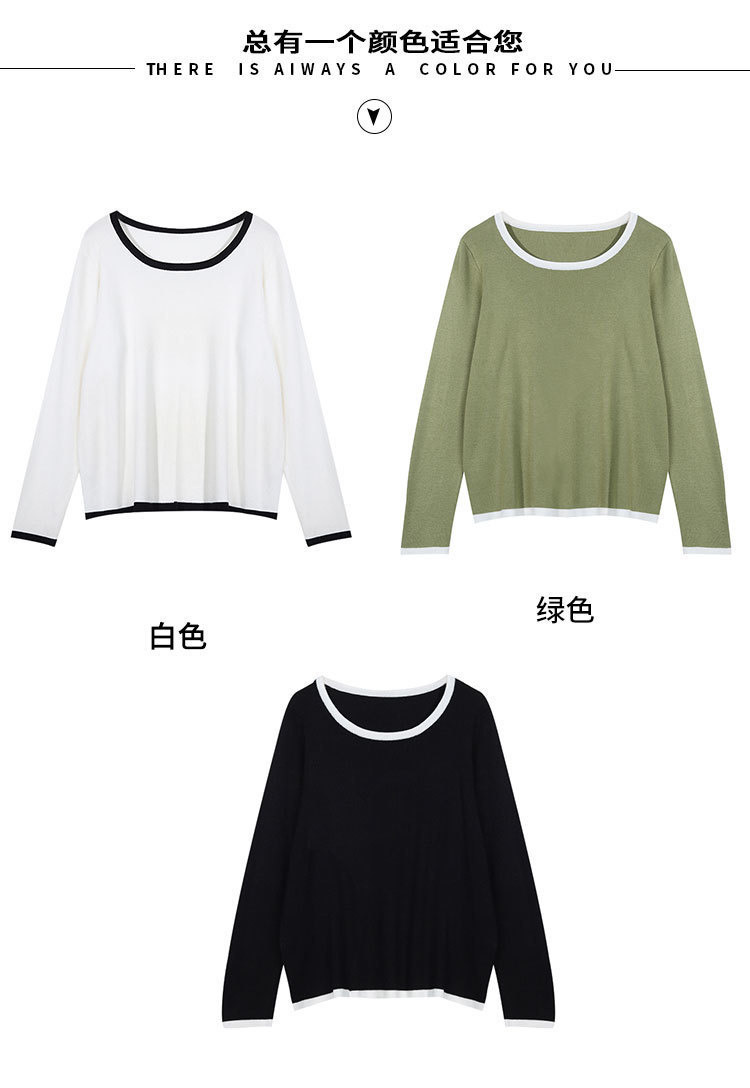 2024 플러스 사이즈 여성의 가을과 겨울 새로운 패션 라운드 넥 슬림 한 나이-스웨터 풀오버 지방 자매 탑 감소