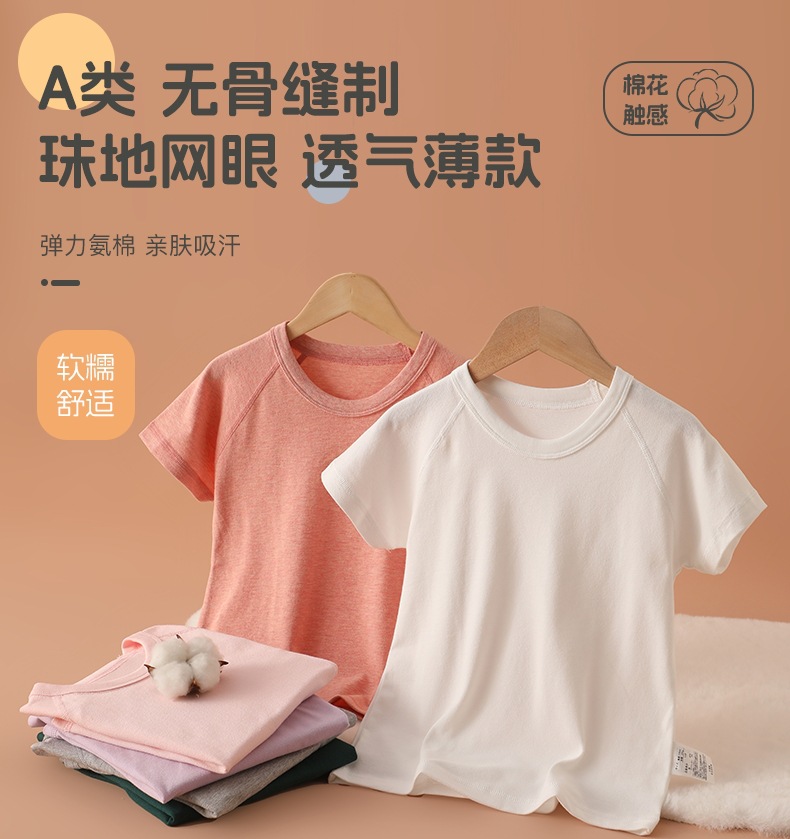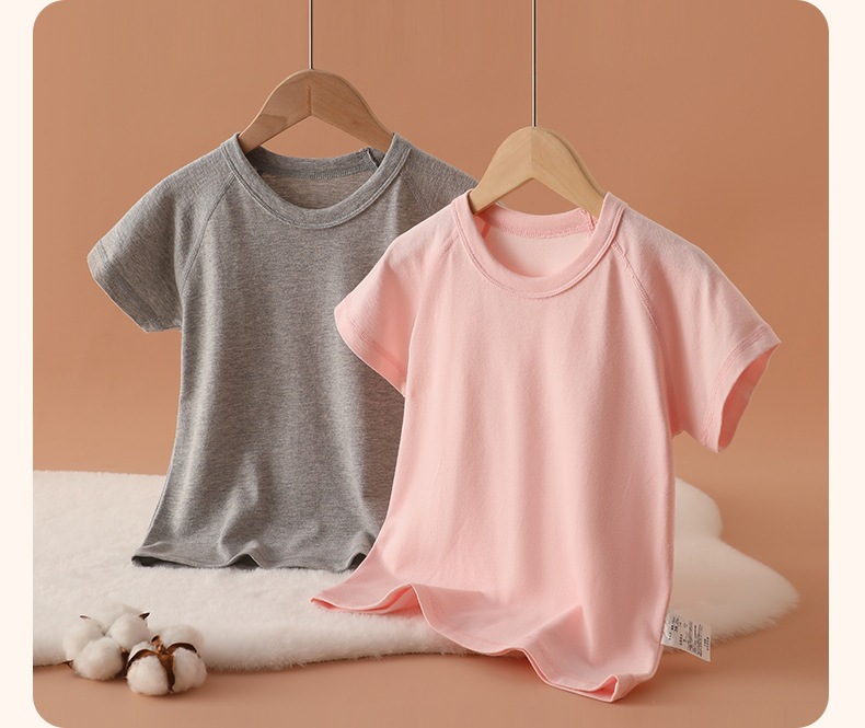 코튼 어린이 반팔 티셔츠 소년과 소녀 솔리드 컬러 메쉬 페블 코튼 아기의 둥근 목 스포츠 탑 반소매 빠른 건조스토어 가기