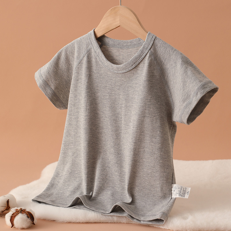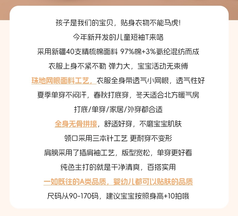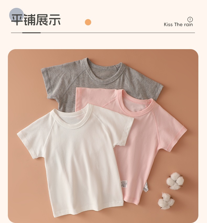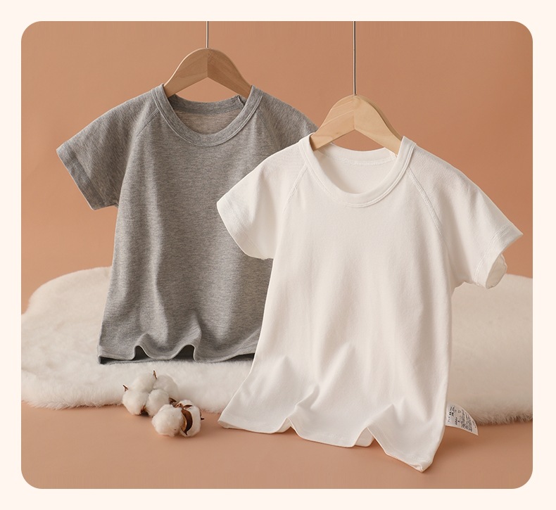코튼 어린이 반팔 티셔츠 소년과 소녀 솔리드 컬러 메쉬 페블 코튼 아기의 둥근 목 스포츠 탑 반소매 빠른 건조