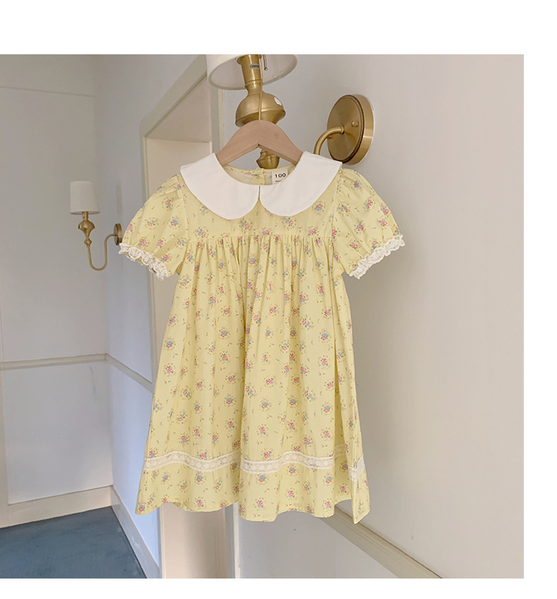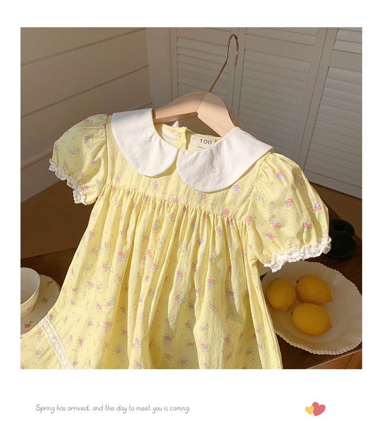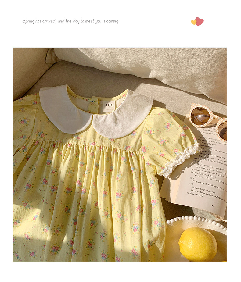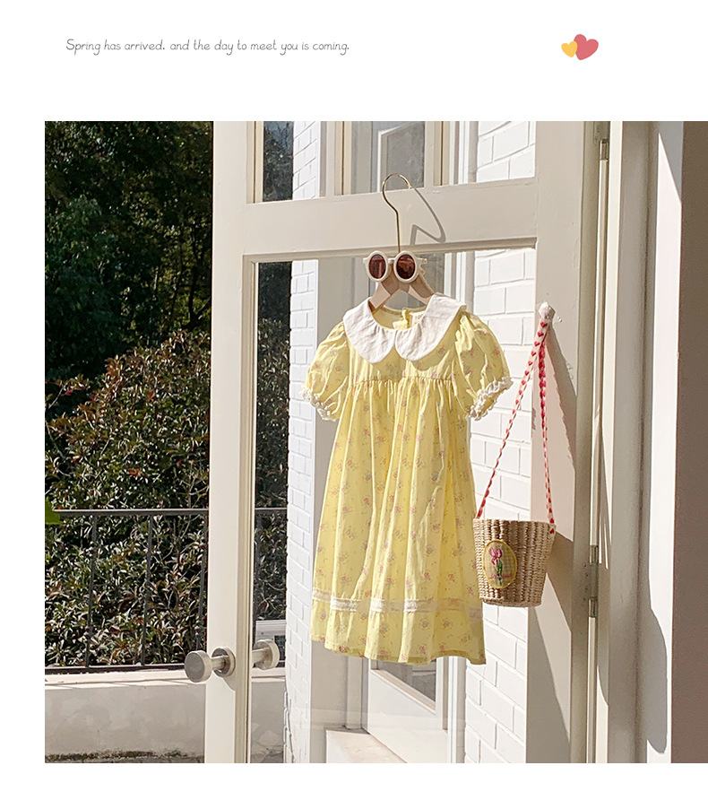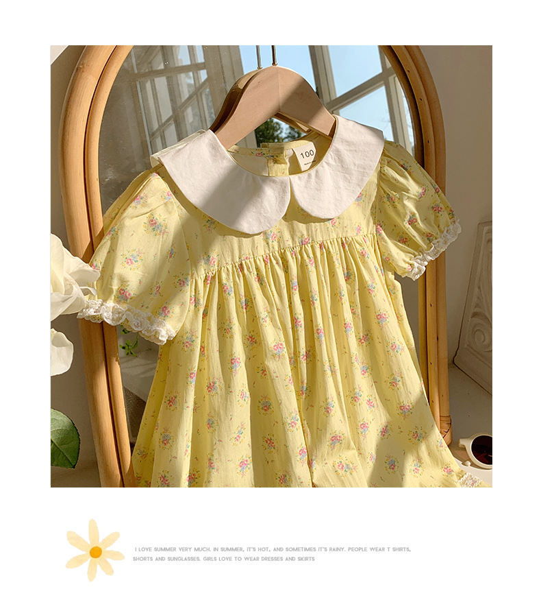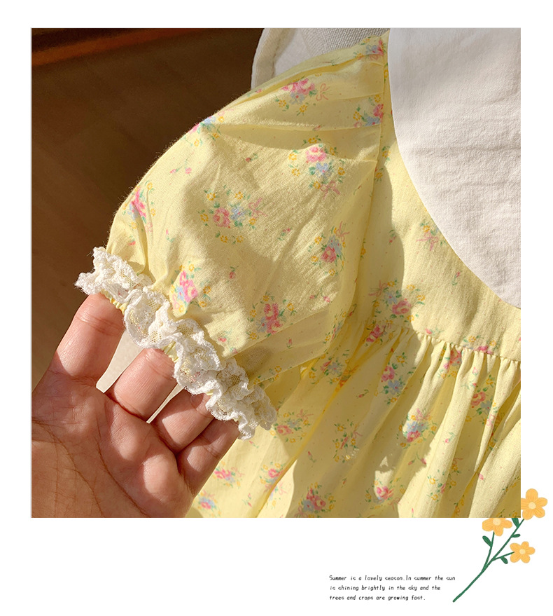 2025 년 여름 신형 인형 칼라 대조 컬러 걸스 원피스 레이스 레이스 레이스 버블 반소매 공주 원피스 한국 아동복스토어 가기