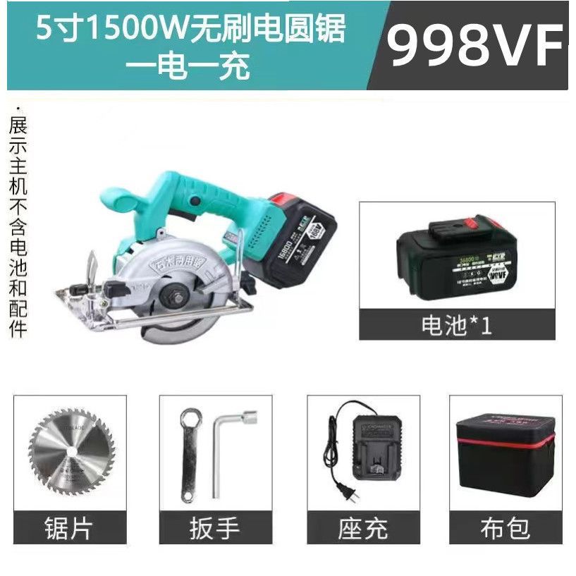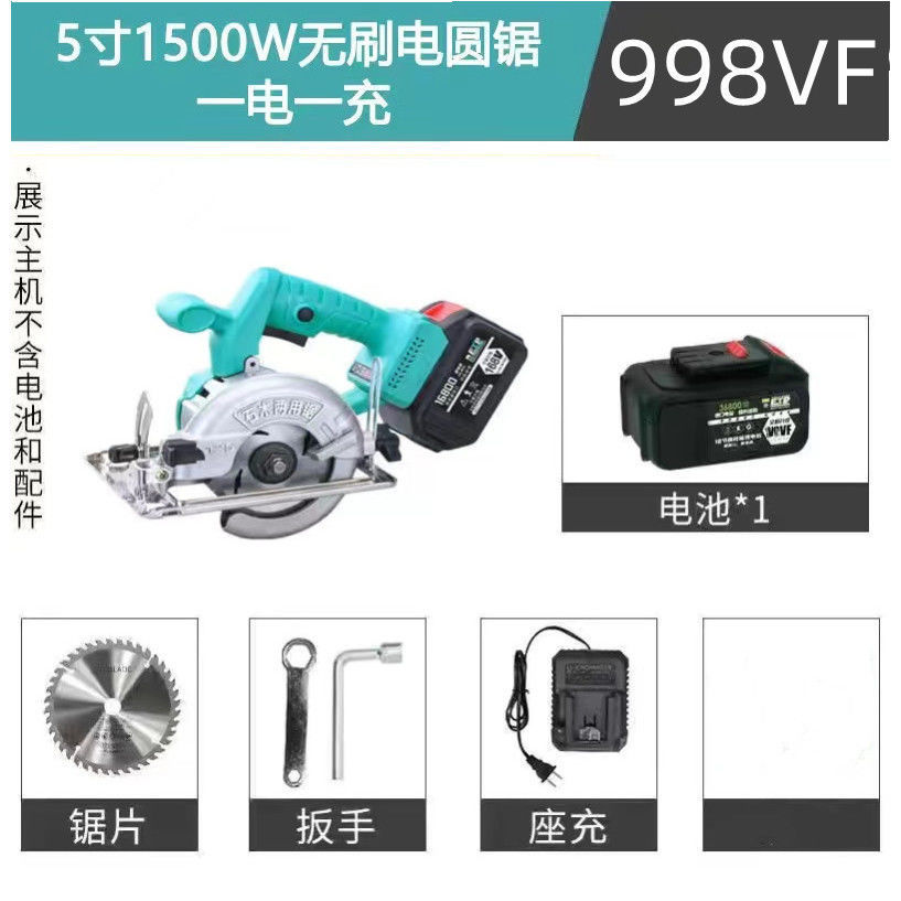 • 998VF 배터리 1개 및 충전기 1개 + 톱날 + 도구 키트_5인치 1500W 리튬 배터리 브러시리스 모터 전기 원형 톱