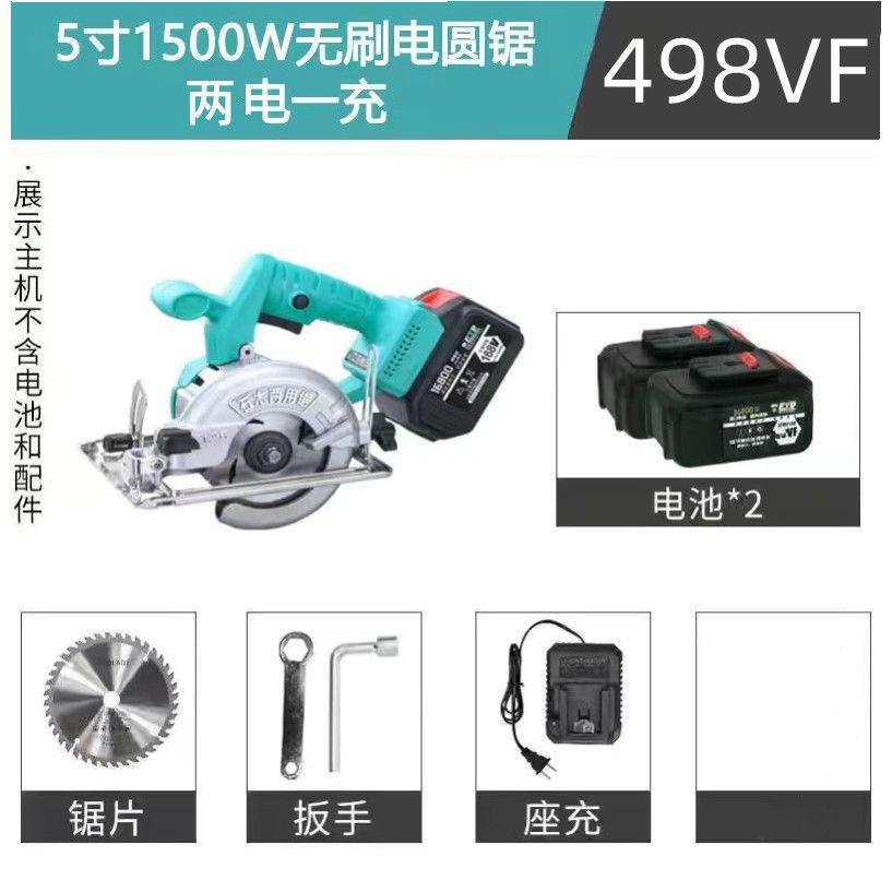• 498VF 배터리 2개 및 충전기 1개 + 톱날 + 도구 키트_5인치 1500W 리튬 배터리 브러시리스 모터 전기 원형 톱