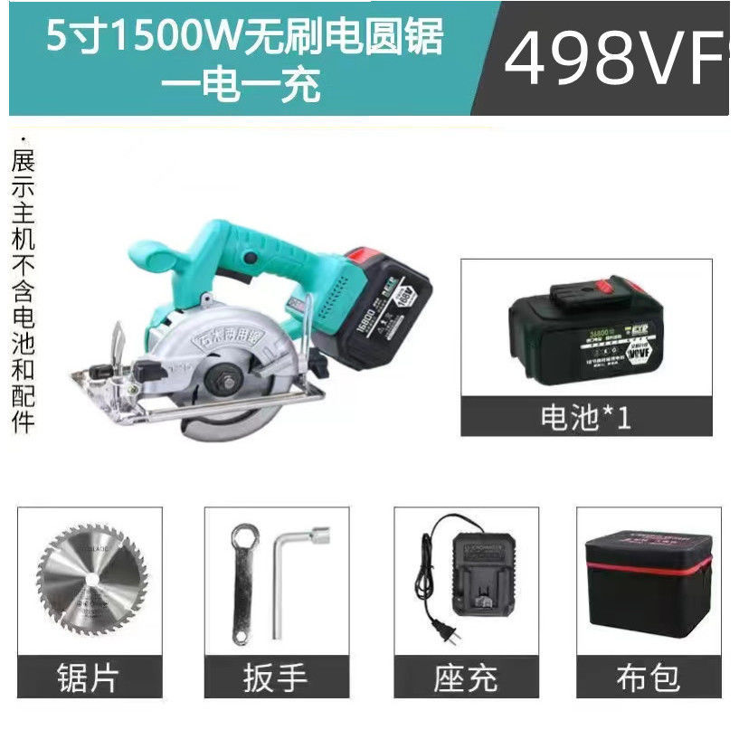 • 498VF 배터리 1개 및 충전기 1개 + 톱날 + 도구 키트_5인치 1500W 리튬 배터리 브러시리스 모터 전기 원형 톱