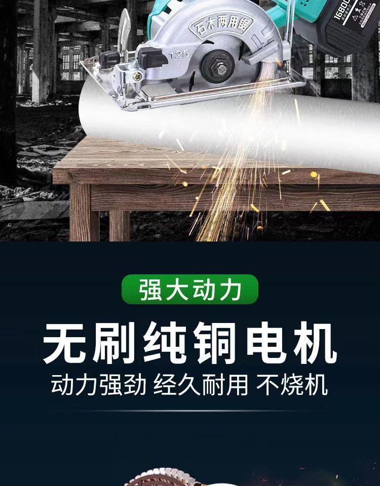 • 베어 메탈(배터리 톱날 제외)_5인치 1500W 리튬 배터리 브러시리스 모터 전기 원형 톱