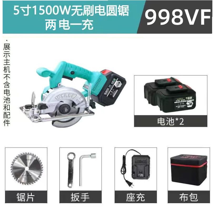• 998VF 배터리 2개 및 충전기 1개 + 톱날 + 도구 키트_5인치 1500W 리튬 배터리 브러시리스 모터 전기 원형 톱