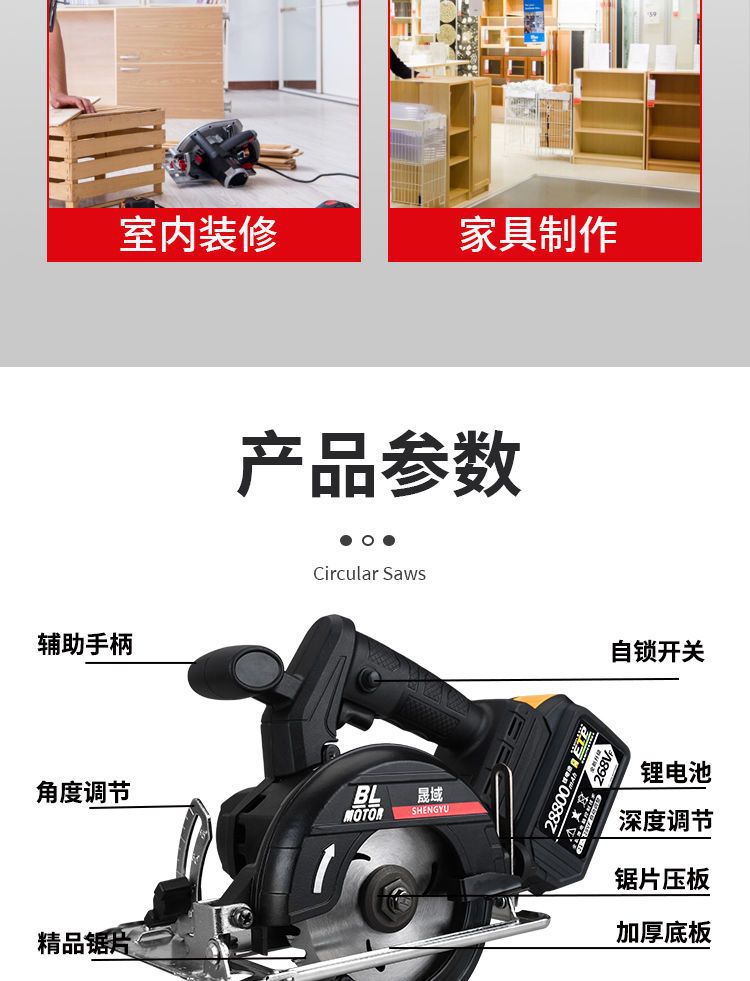 일반 사용 48V88VF 배터리 5 인치 절단 기계 브러시리스 충전 휴대용 목공 전기 톱 리튬 전기 톱스토어 가기