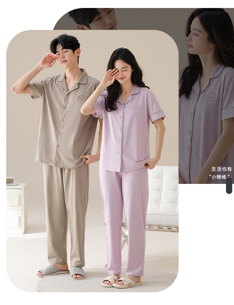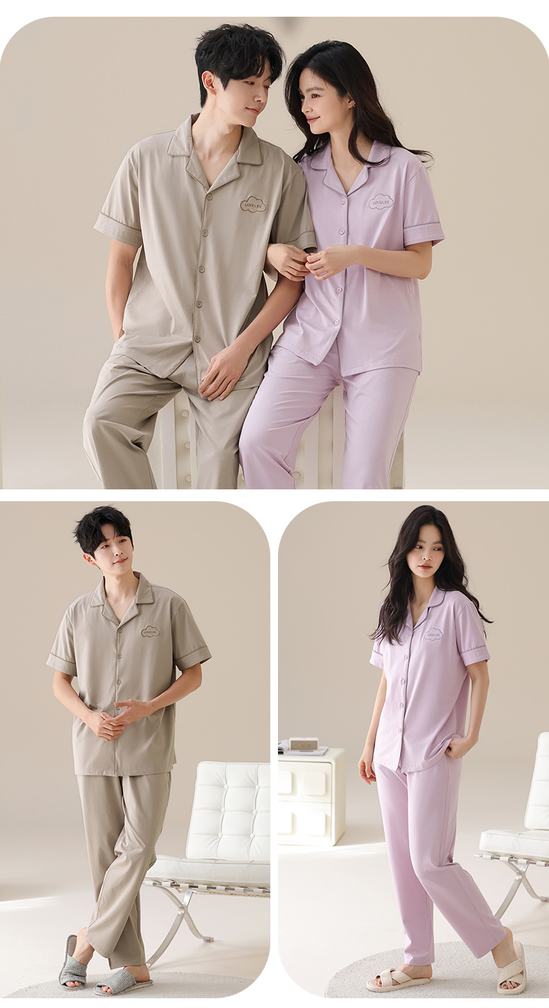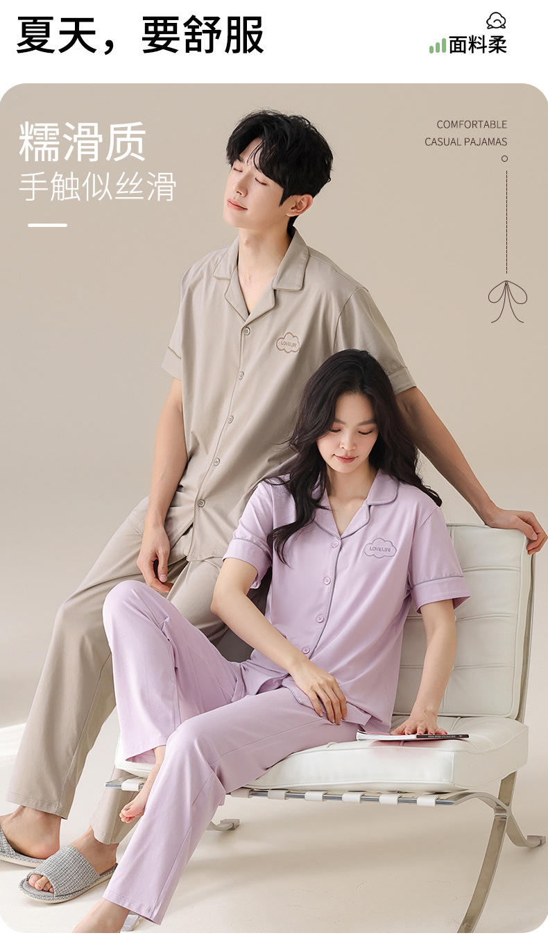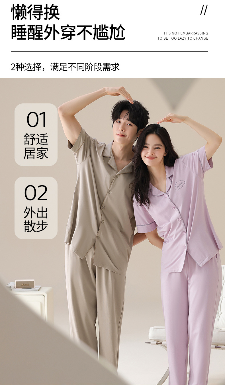 Mulong 귀족 가족 Lycra Cotton Pajamas 커플의 여름 순면 반팔 바지 남성과 여성을위한 얇은 캐주얼 홈 옷스토어 가기