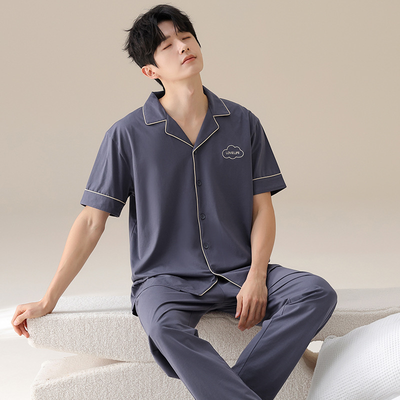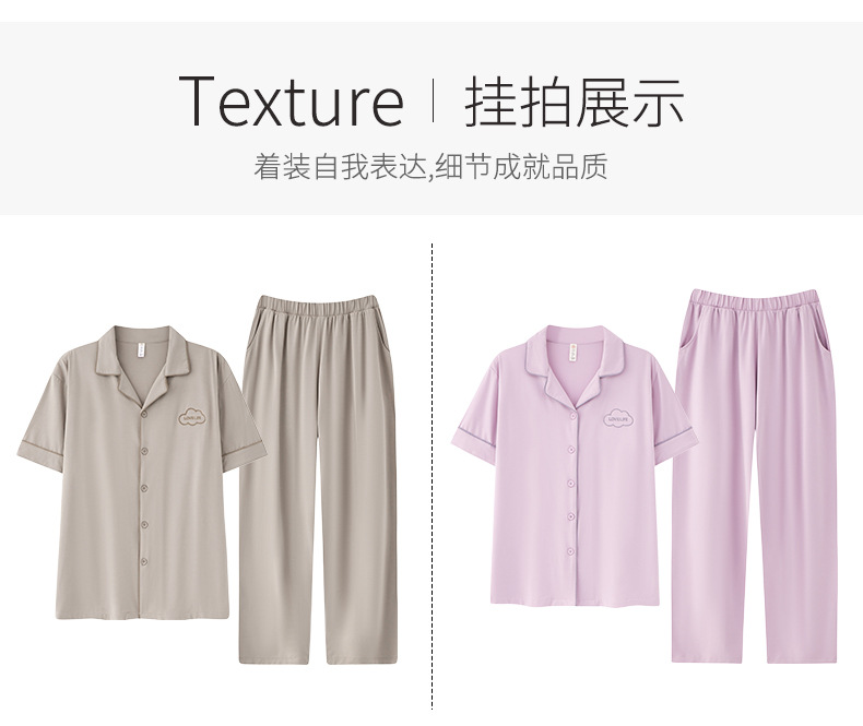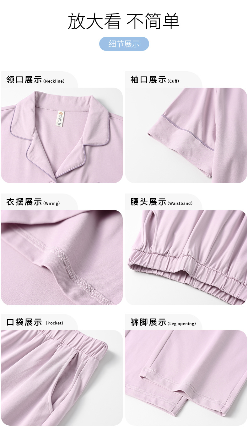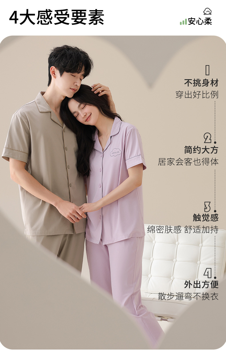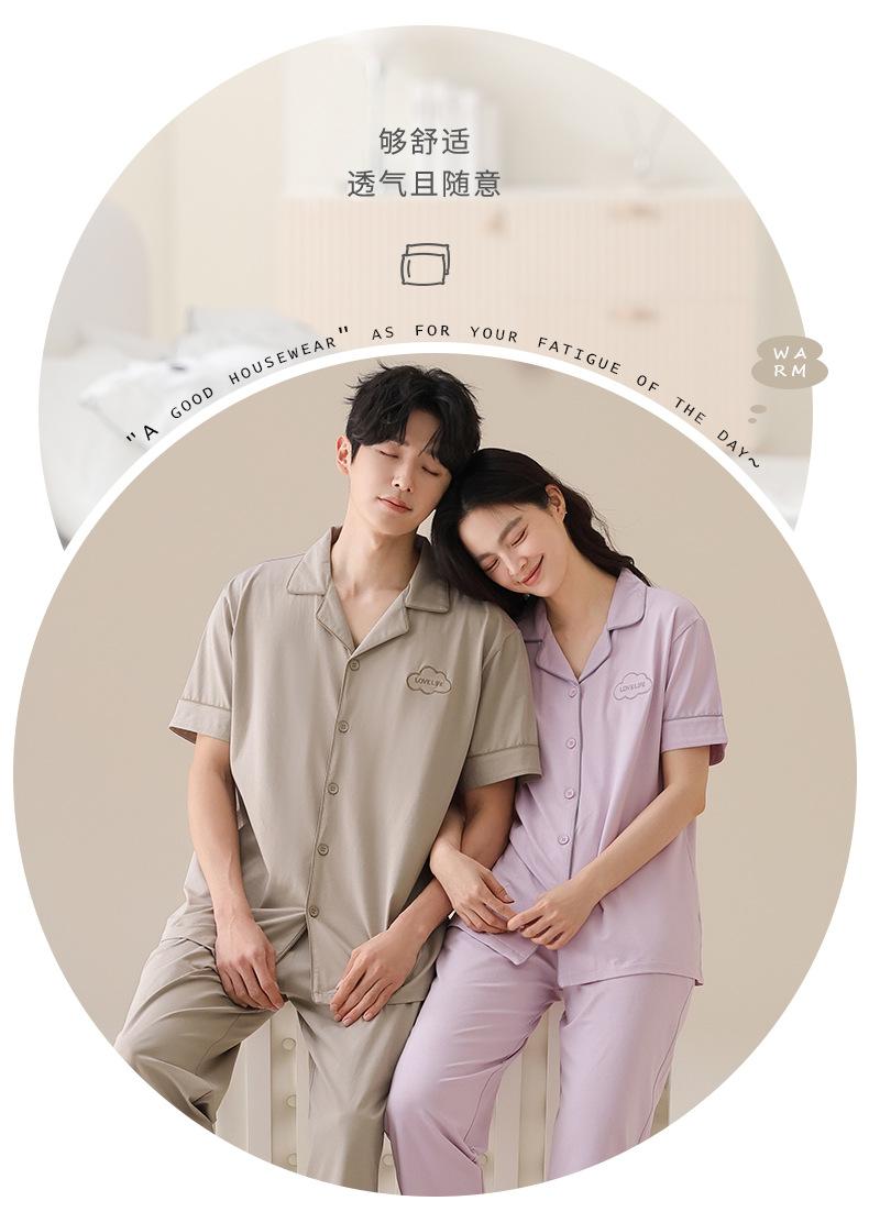 Mulong 귀족 가족 Lycra Cotton Pajamas 커플의 여름 순면 반팔 바지 남성과 여성을위한 얇은 캐주얼 홈 옷스토어 가기
