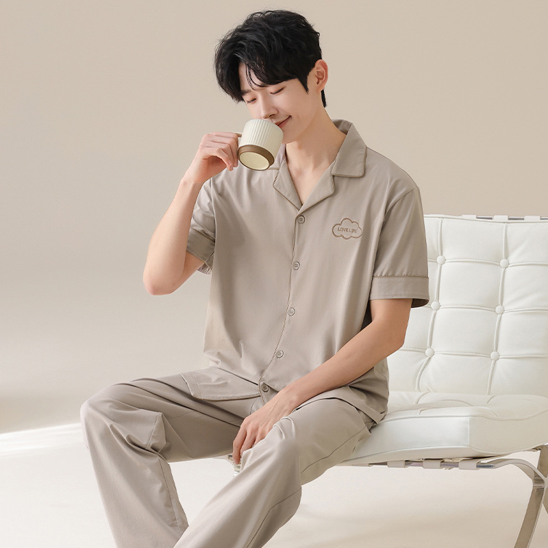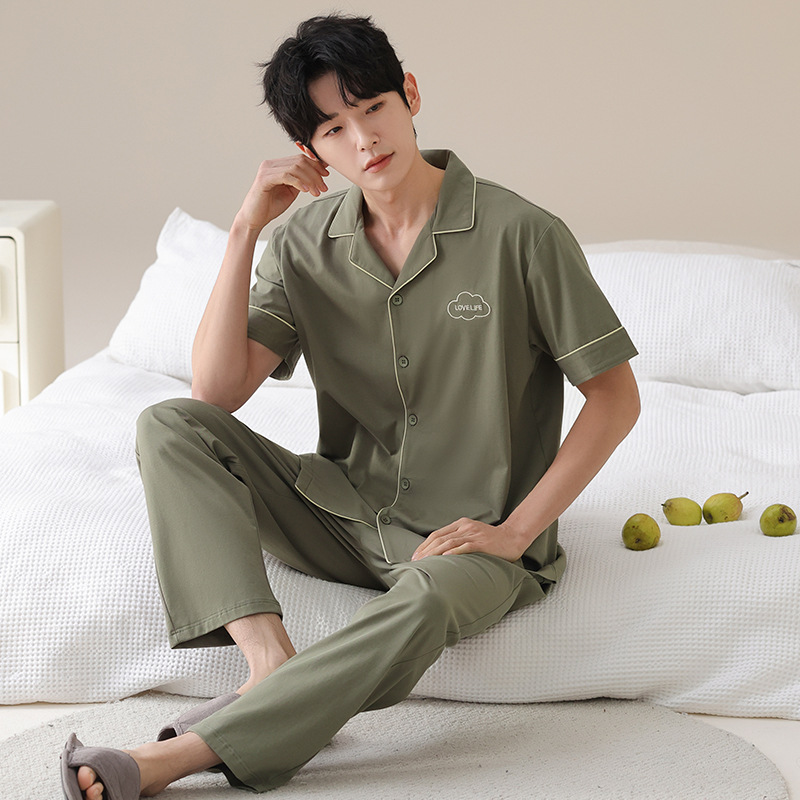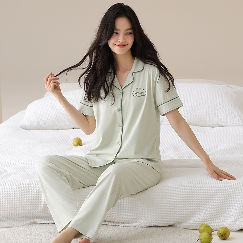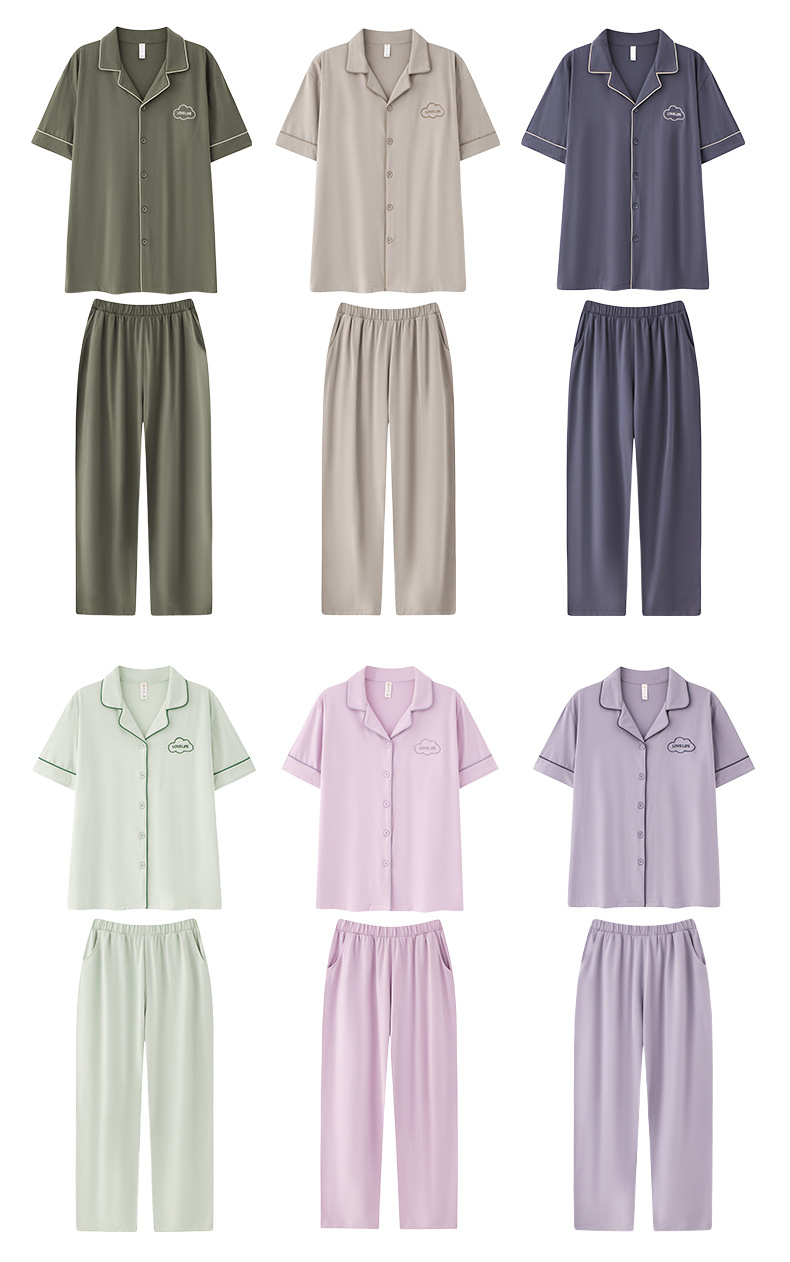 Mulong 귀족 가족 Lycra Cotton Pajamas 커플의 여름 순면 반팔 바지 남성과 여성을위한 얇은 캐주얼 홈 옷