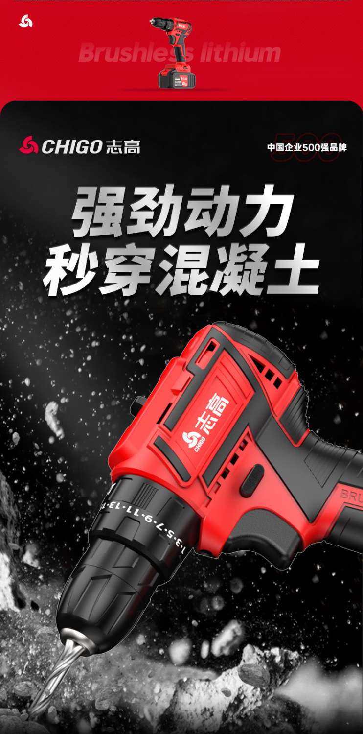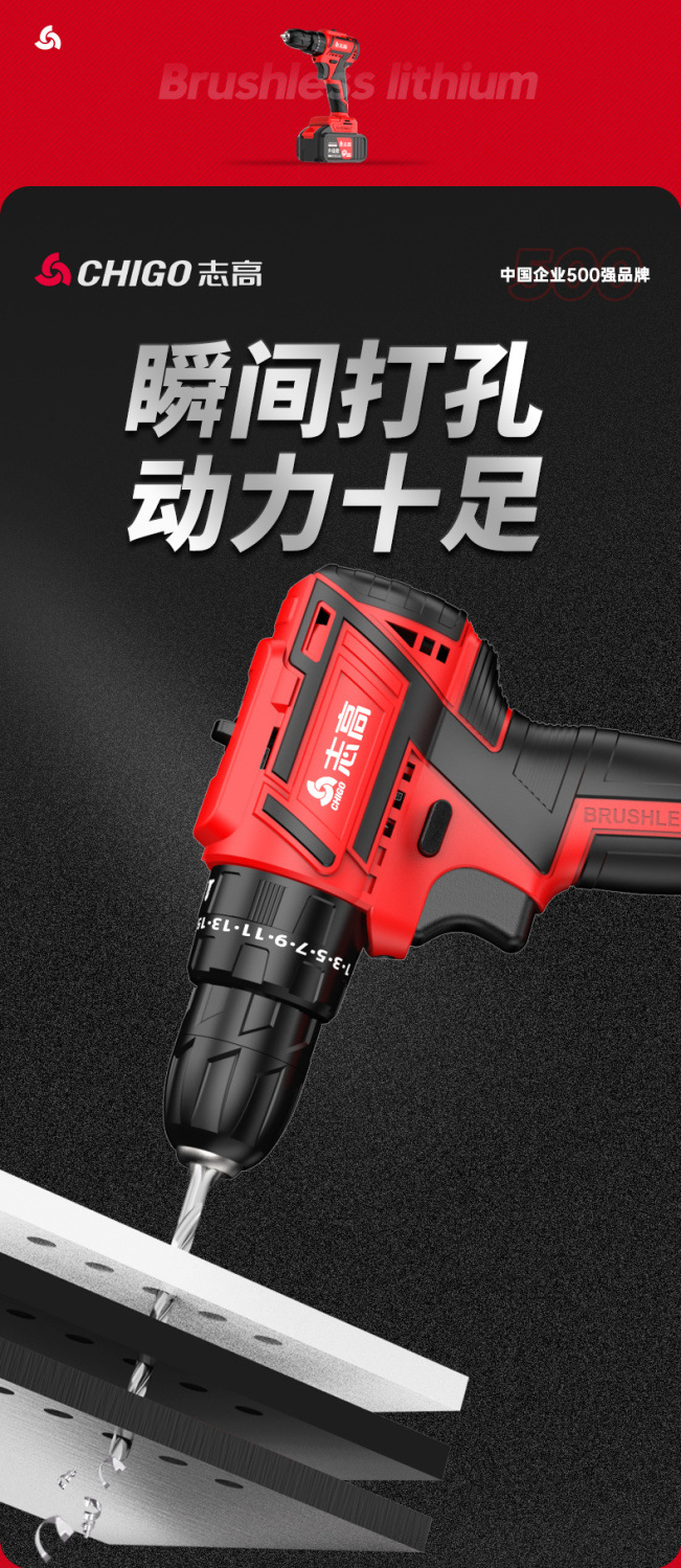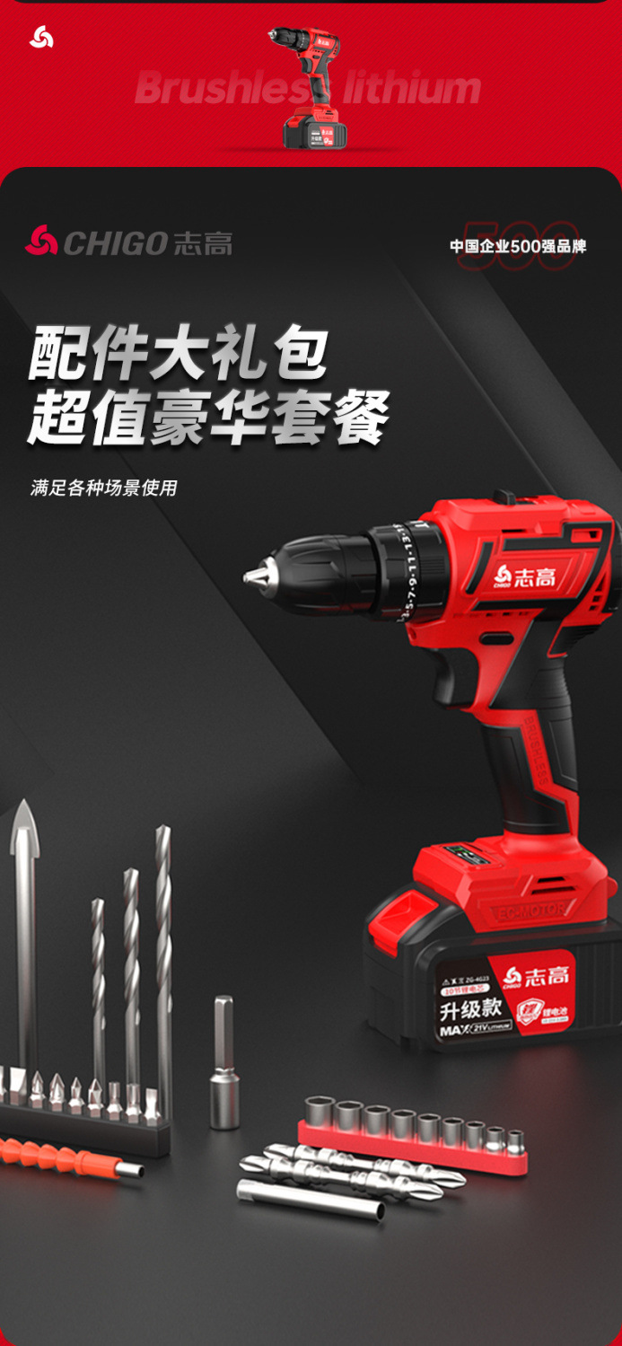 치고 브러시리스 리튬 전기 드릴 충전식 핸드 전기 드릴 회전 다기능 충격 드릴 가정용 핸드 건 드릴 전기 드라이버스토어 가기