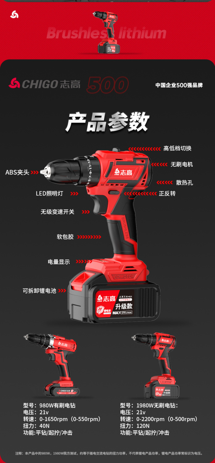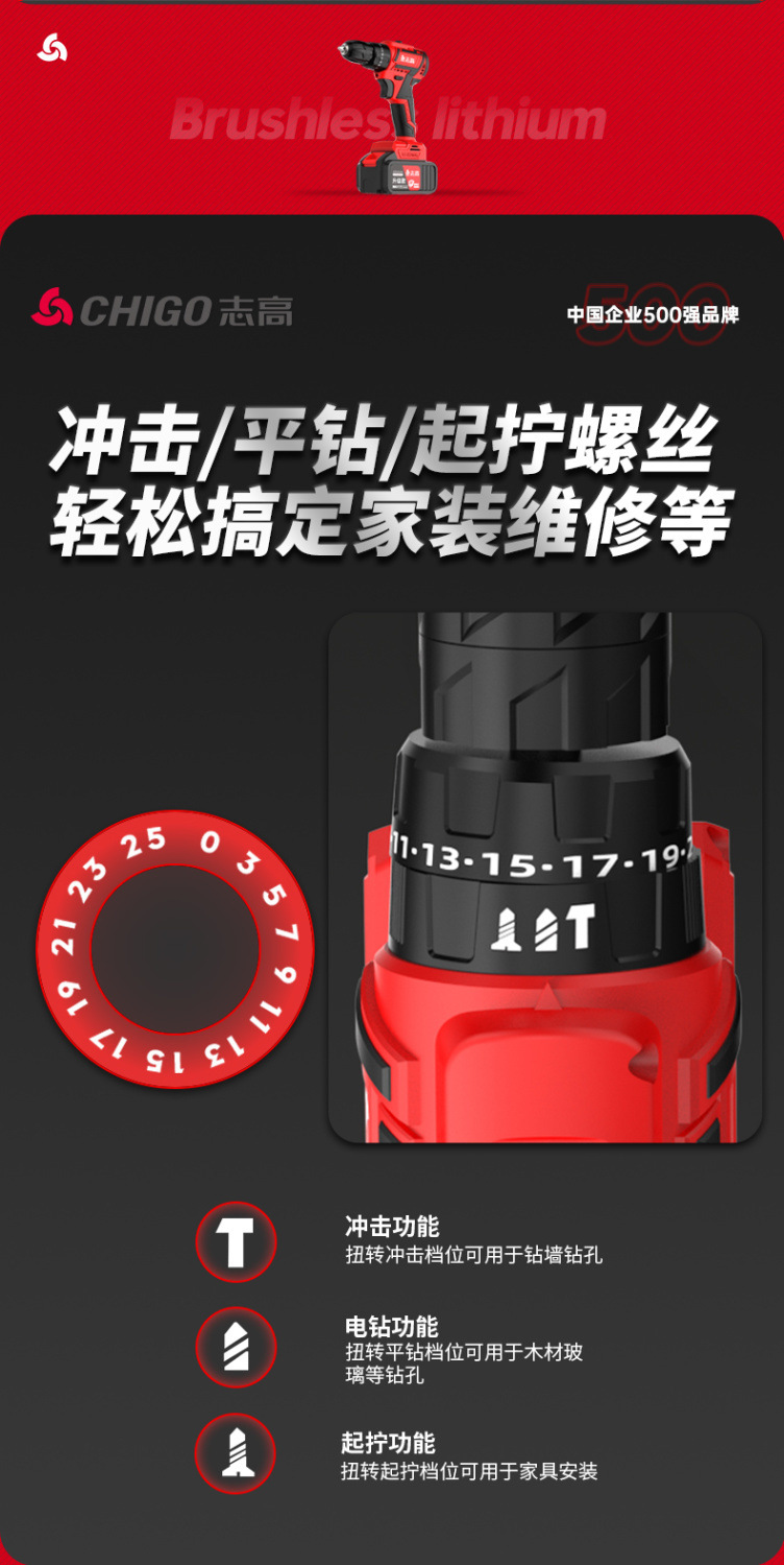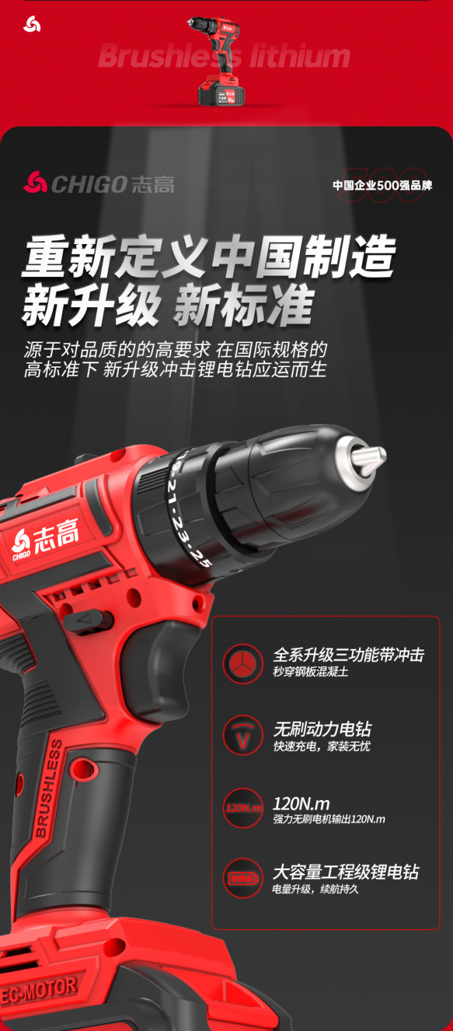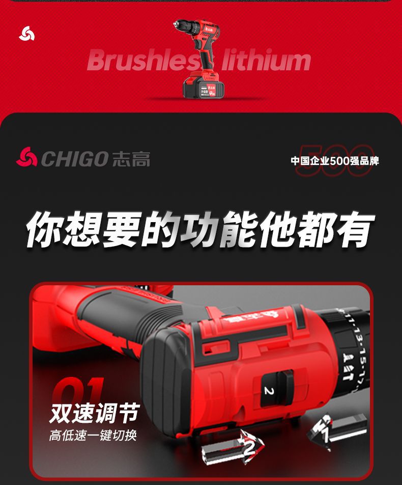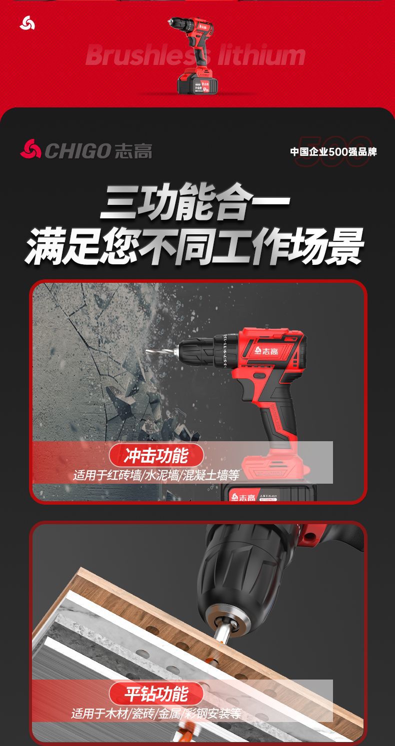치고 브러시리스 리튬 전기 드릴 충전식 핸드 전기 드릴 회전 다기능 충격 드릴 가정용 핸드 건 드릴 전기 드라이버